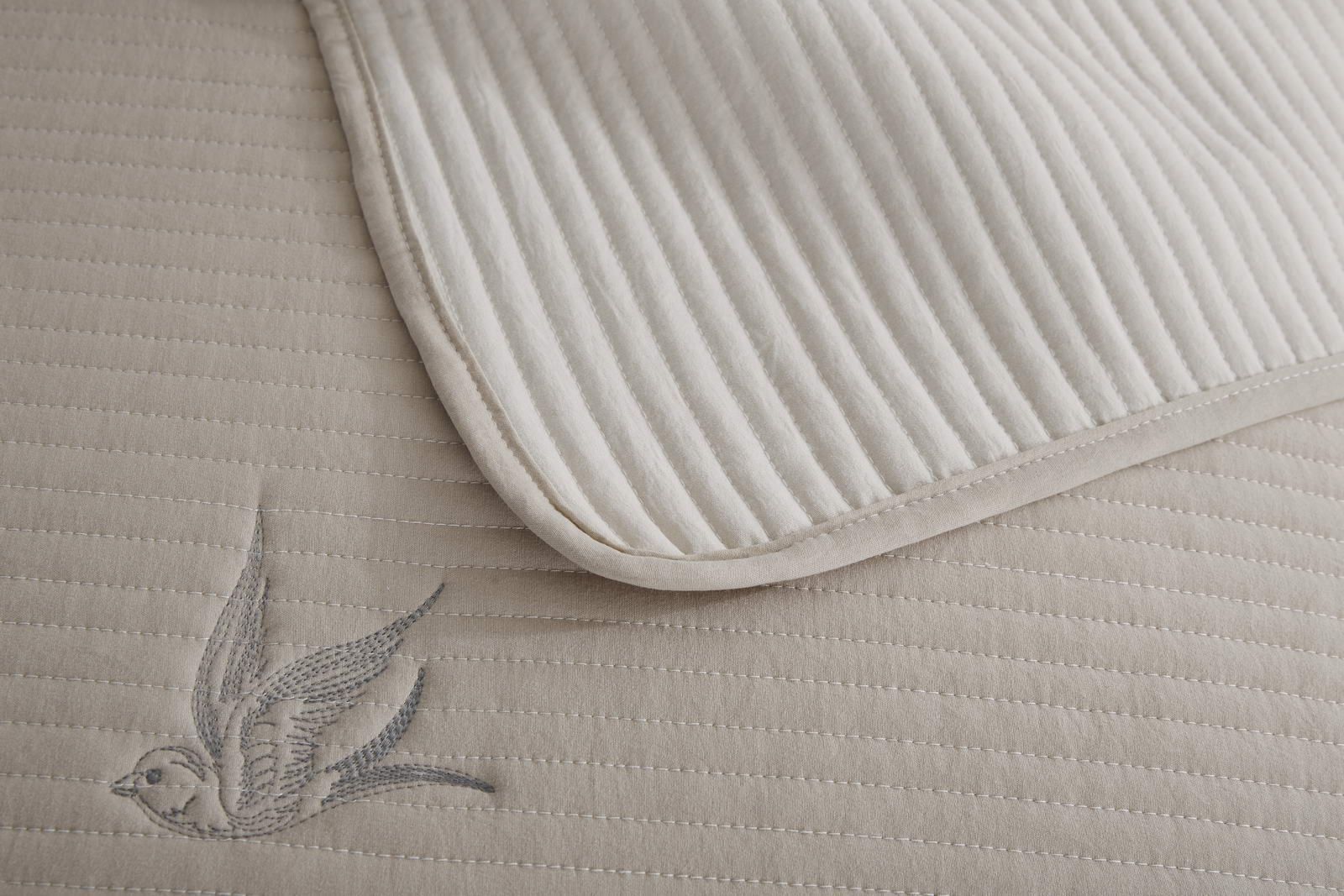 Покрывала этой коллекции выполнены из смеси хлопка и вискозы, используются только натуральные красители в пастельных тонах, тщательно продуманный рисунок напоминает о летнем небе и бескрайних полях южной Франции. Розовые или пудровые оттенки помогут создать романтичную атмосферу, более холодные хорошо подойдут для оформления мужской спальни.