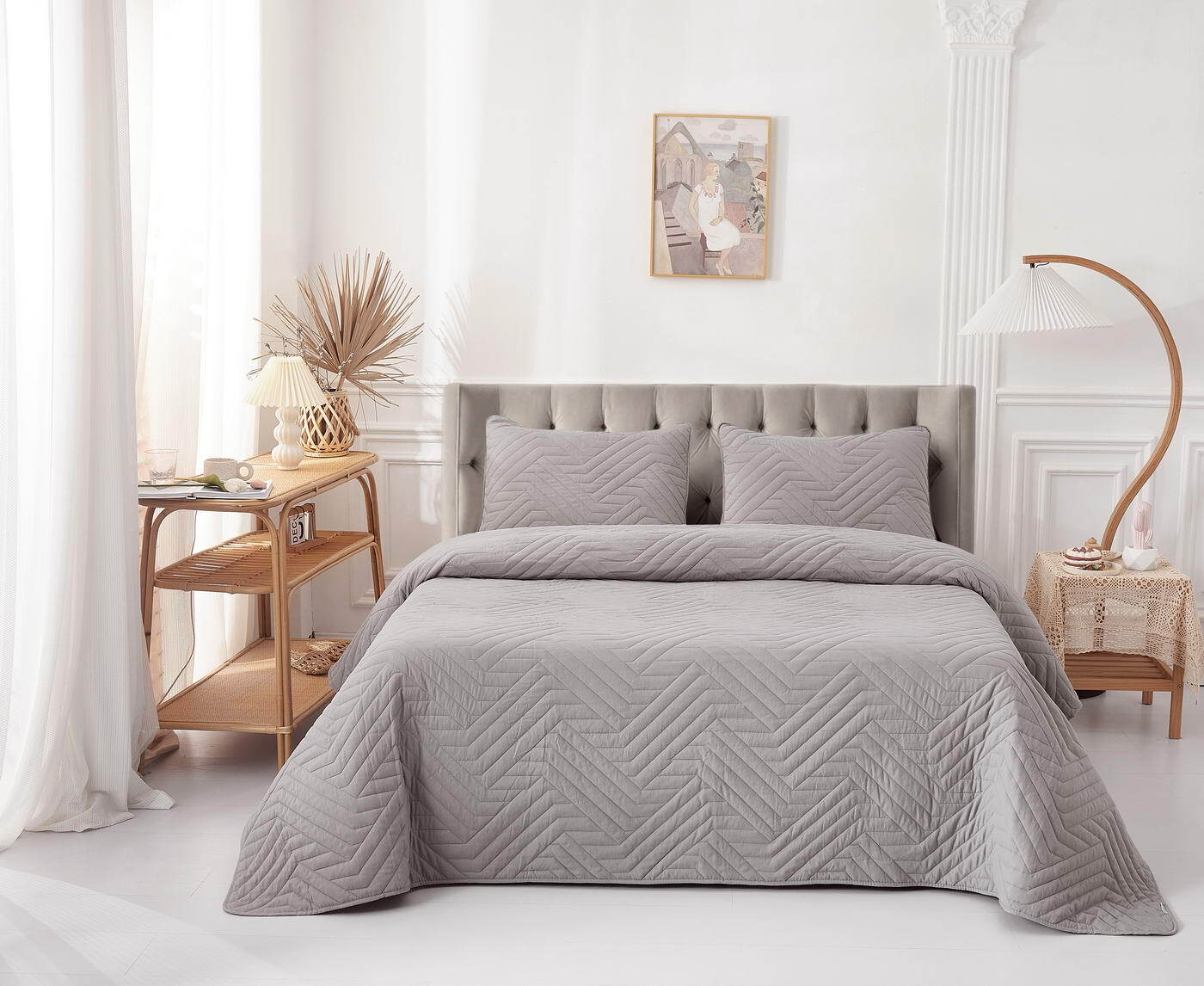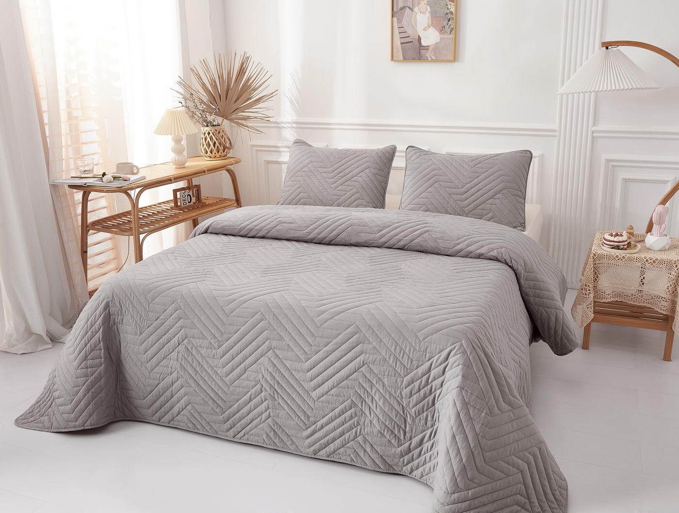 Покрывало 230х250 и 2 наволочки 50х70 Sofi De MarkO Мориц серое