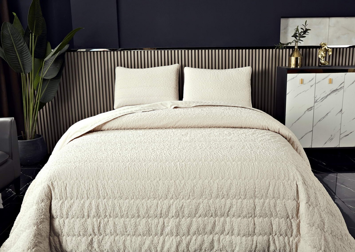 Стеганые покрывала Надин имеют интересную жатую структуру, благодаря которой они выглядят живо и оригинально. Они украсят любое помещение.