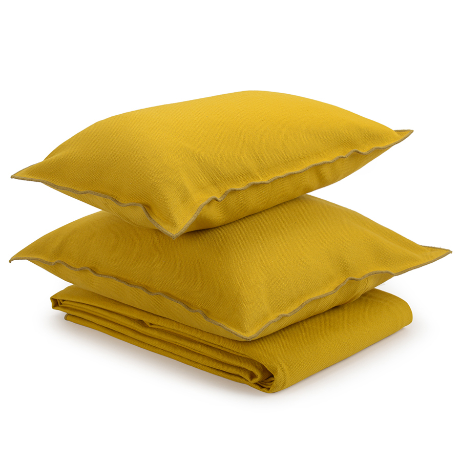 Покрывало из фактурного хлопка горчичного цвета с кантом из коллекции Essential подойдет для любого современного интерьера. Плотный фактурный хлопок не вызывает аллергии, хорошо пропускает воздух, не электризуется, и на нем не образуются катышки. В интерьере можно дополнить подушками в том же стиле. Покрывало представлено в двух размерах.