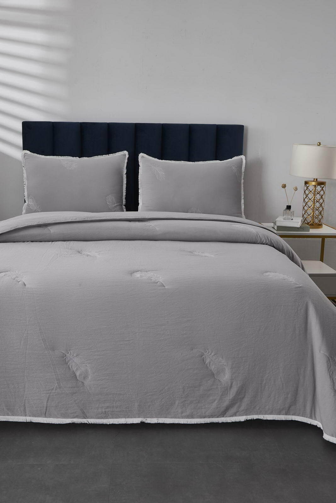 В комплект входит покрывало и две наволочки. В коллекции есть покрывала нескольких классических расцветок, которые могут украсить любой интерьер.