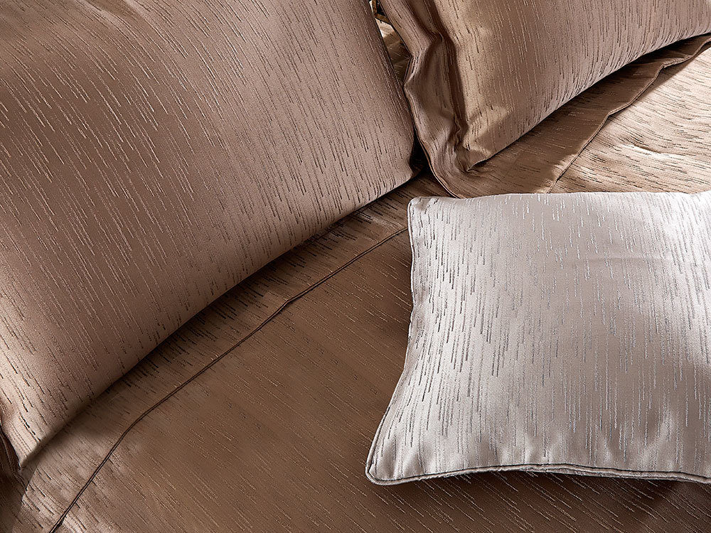 Тёплый оттенок шоколадного трюфеля на ткани с благородным блеском и интересной структорой.