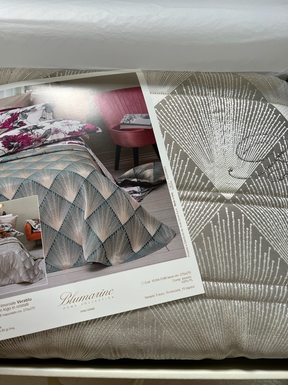 Роскошное жаккардовое покрывало VERABLU с королевским узором из новой коллекции 2024 всемирно известного итальянского бренда Blumarine home придаст любой спальне благородный и изысканный вид.