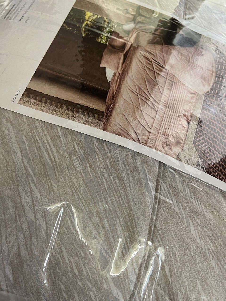 Шелковистое. Присутствуют оттенки серого, бежевого, голубого.
