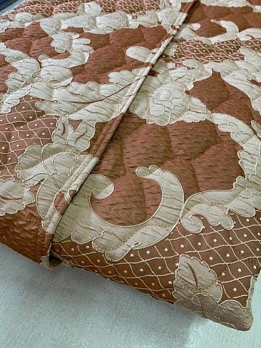 Шикарное итальянское покрывало. Сделает любую спальню красивее и уютнее. Верх: 69% хлопок, 31% полиэстер. Низ: 100% хлопок. Наполнение: экологически чистый полиэстер 90 г/кв.м.