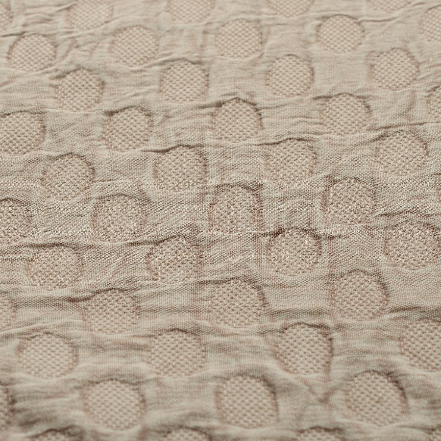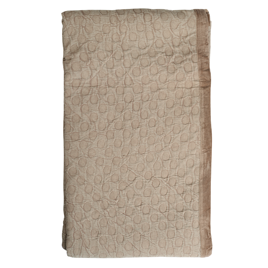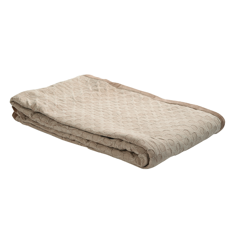 Покрывало базового бежевого оттенка выполнено из прочного стираного хлопка. Материал, обработанный по специальной технологии, более мягкий и нежный. Гипоаллергенное полотно хорошо пропускает воздух, не электризуется, и на нем не образуются катышки.