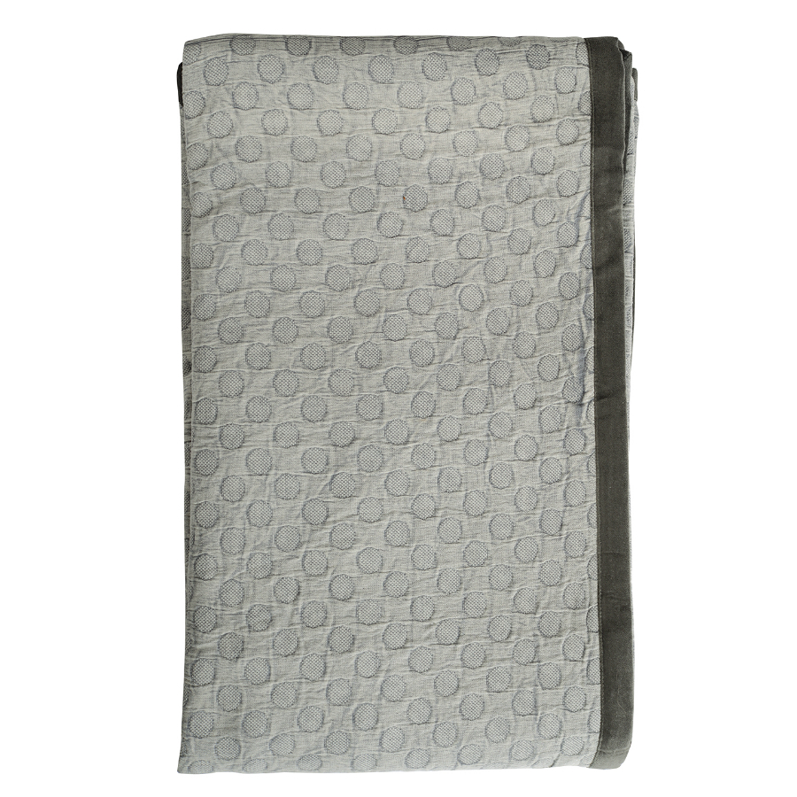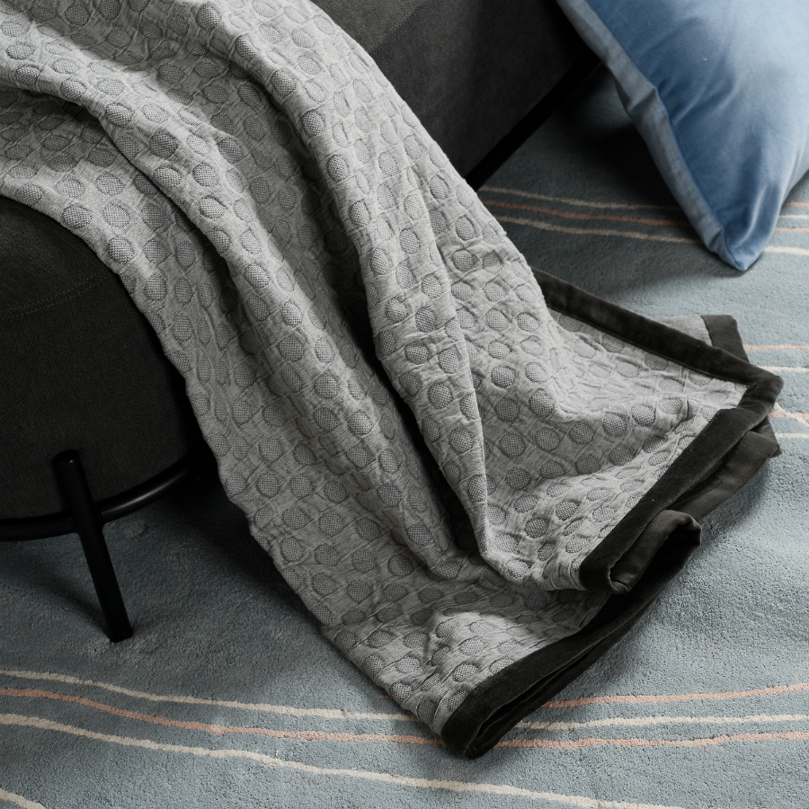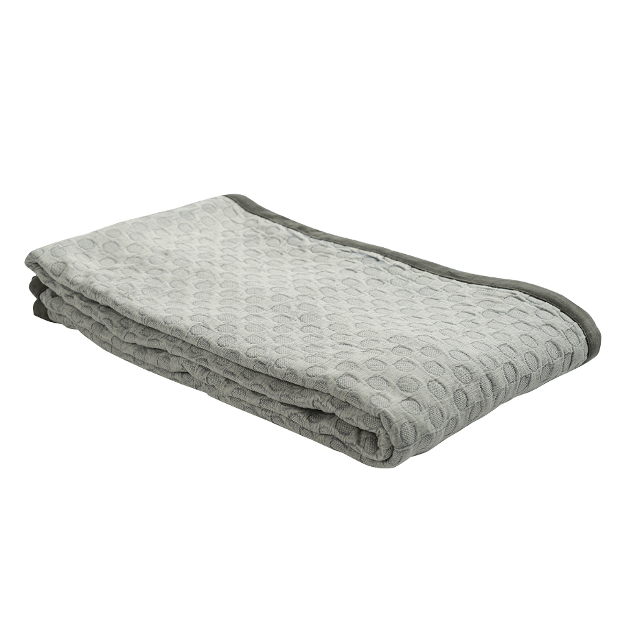 Покрывало базового серого оттенка выполнено из прочного стираного хлопка. Материал, обработанный по специальной технологии, более мягкий и нежный. Гипоаллергенное полотно хорошо пропускает воздух, не электризуется, и на нем не образуются катышки.
