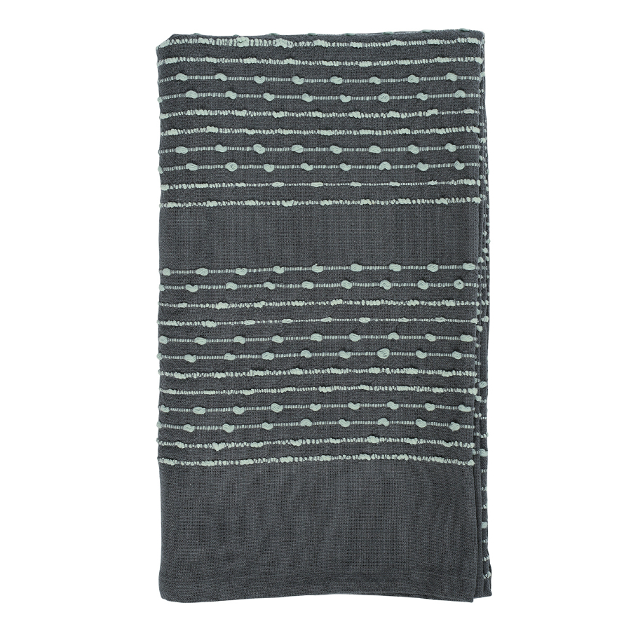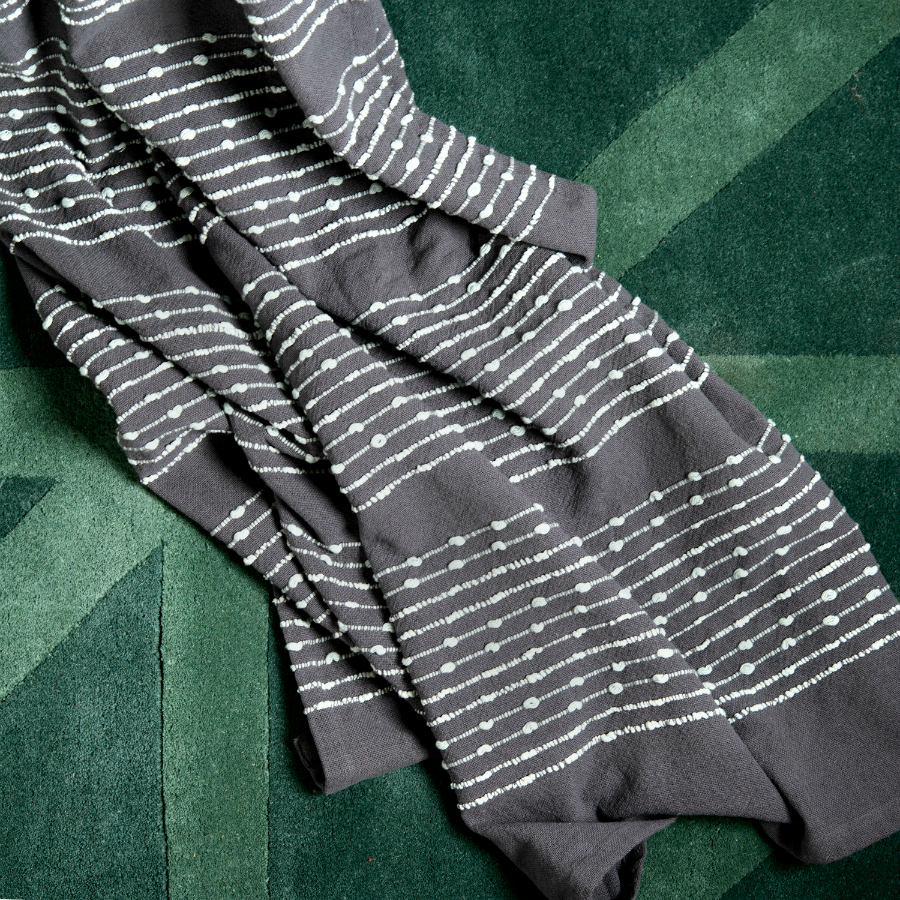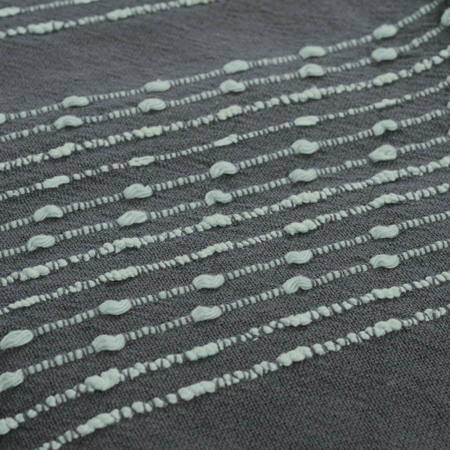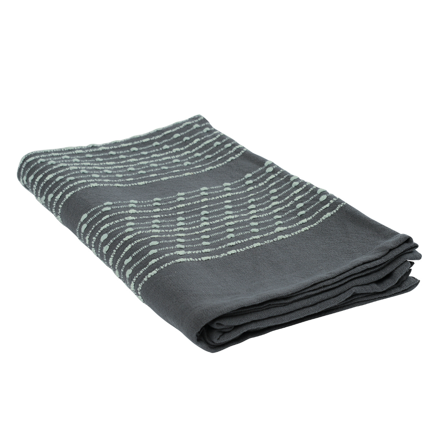 Хлопковое покрывало с простым и приятным дизайном: тёмный фон прохладного серого оттенка декорирован светлой строчкой, напоминающей о несложных, но изящных этнических узорах. Натуральная хлопковая ткань приятна на ощупь. При правильном уходе изделие прослужит долго благодаря своей прочности и высокому качеству. Изделие упаковано в брендированную крафтовую коробку.