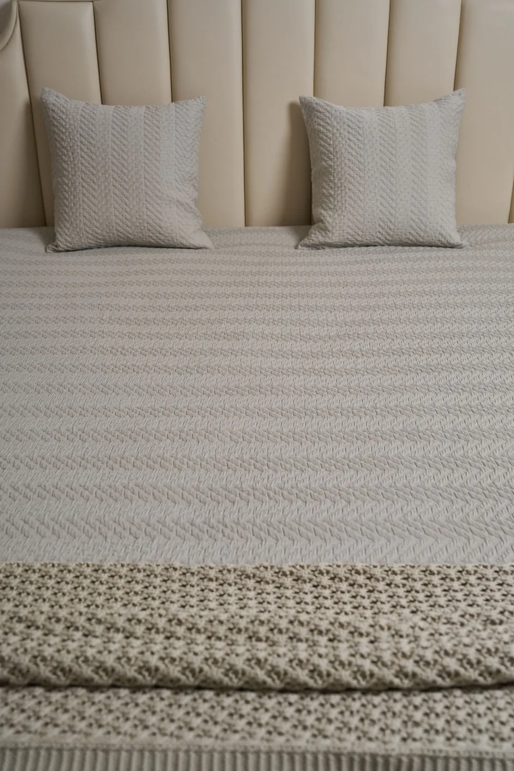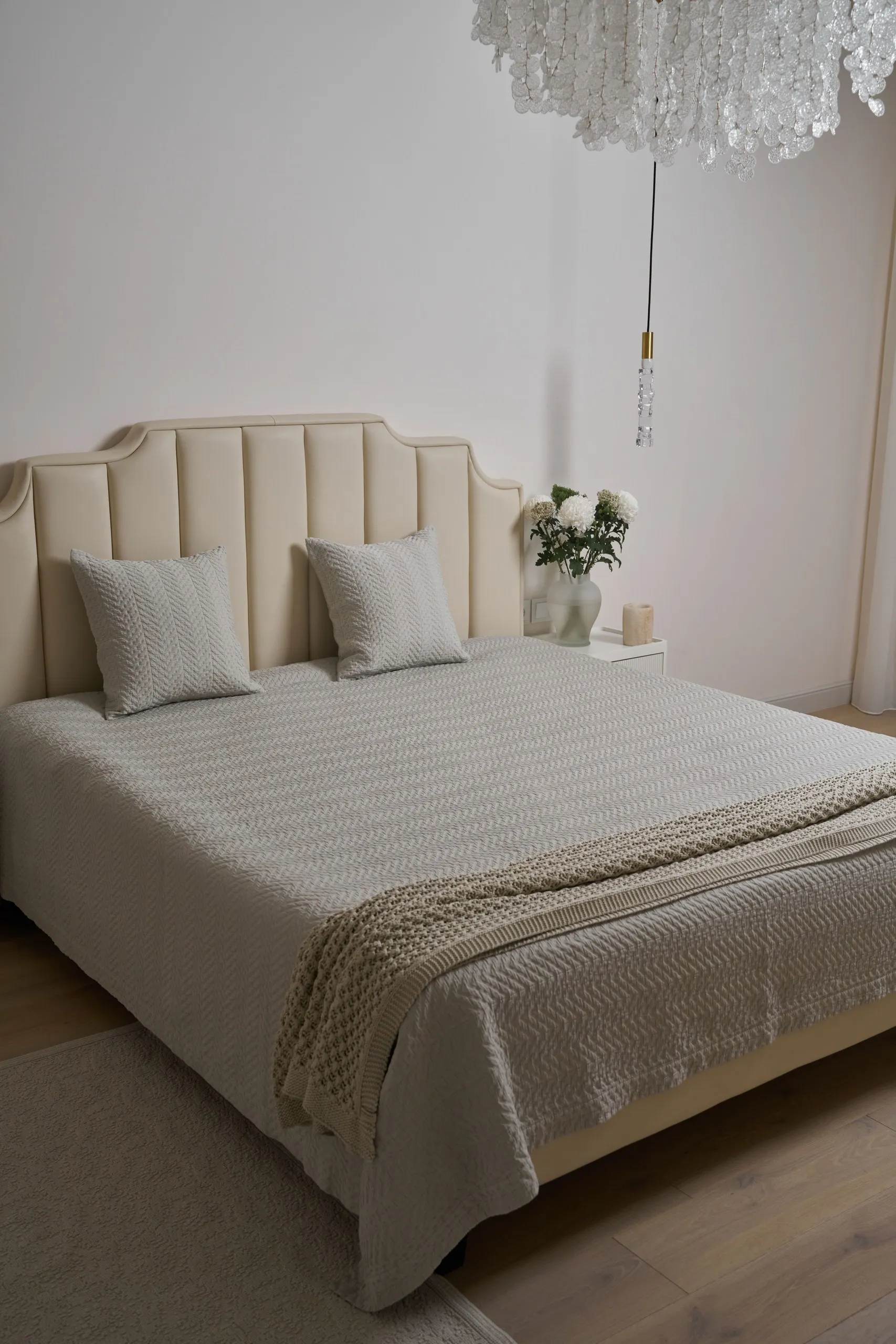 Изделие подойдёт для оформления кровати, защиты постельного белья и создания аккуратного интерьерного акцента. Цвет серо-фисташковый легко сочетается с базовыми и природными оттенками интерьера, поэтому текстиль можно использовать как самостоятельный акцент или как часть готового комплекта.