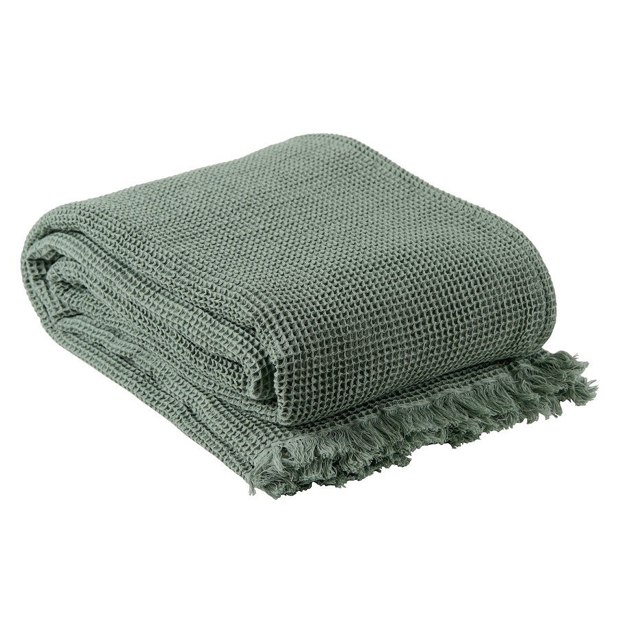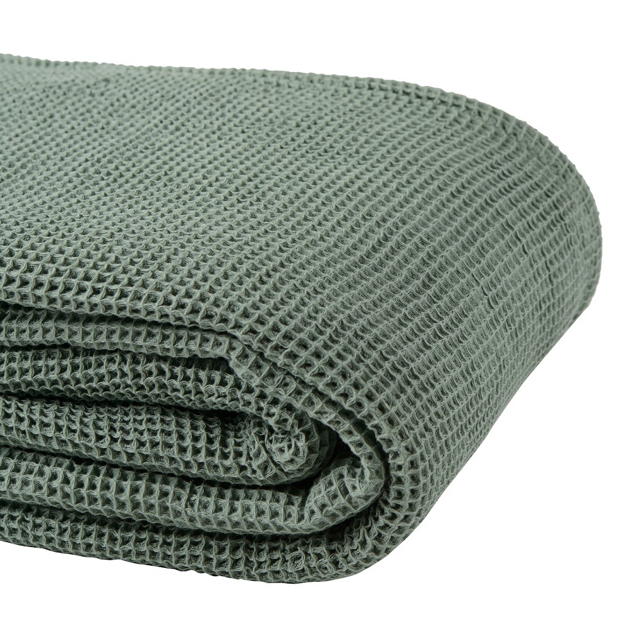 Покрывало вафельное мятного цвета из коллекции Essential станет необычным акцентом в интерьере благодаря интересной фактуре. станет акцентом в интерьере благодаря интересной фактуре. Однотонное покрывало легко сочетать с другим текстилем в спальне или гостиной, оно будет хорошо смотреться в пространствах в стиле минимализм, лофт или сканди. Гипоаллергенный 100%, хлопок отличается прочностью и долговечностью, не электризуется, на нем не образуются катышки. Представлено в двух цветах и двух размерах.