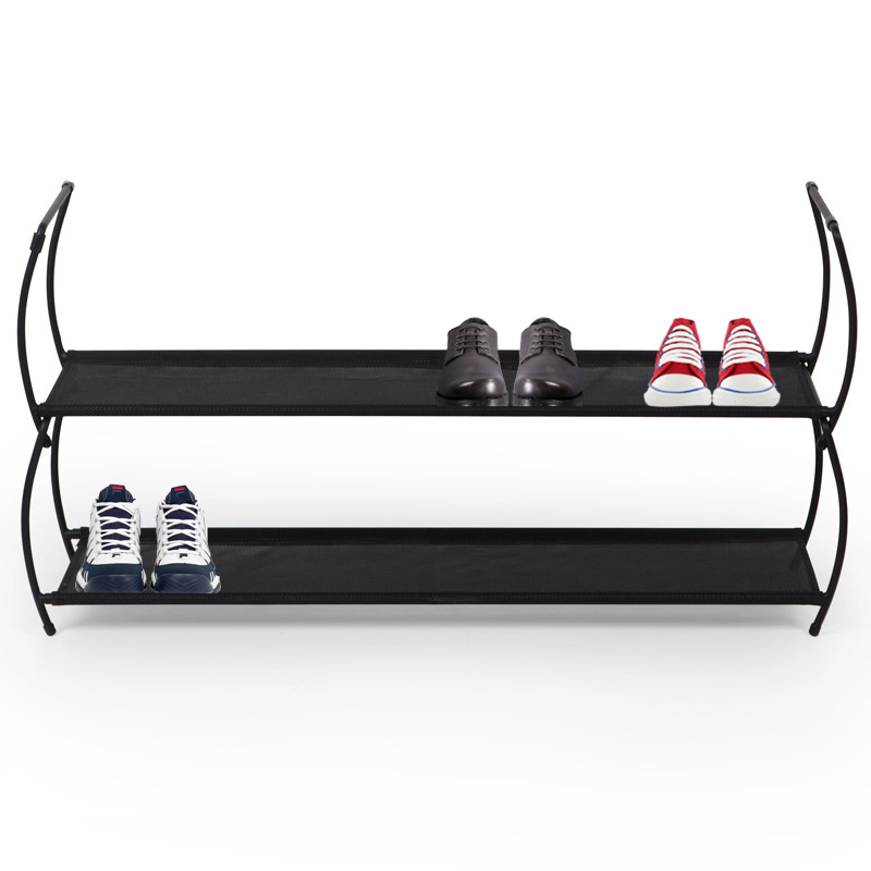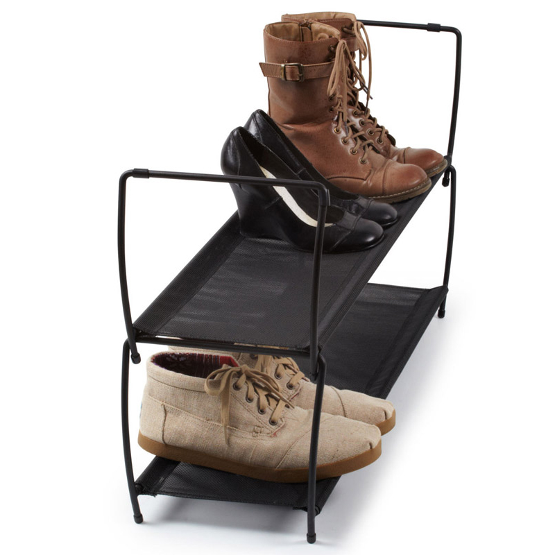 Удобная, легкая и компактная полка позволит аккуратно расставить обувь. В комплекте две полки, которые могут использоваться отдельно или встраиваться друг в друга. Резиновые амортизаторы на ножках защитят пол от царапин. Каждая полка рассчитана на 4-5 пар обуви.
