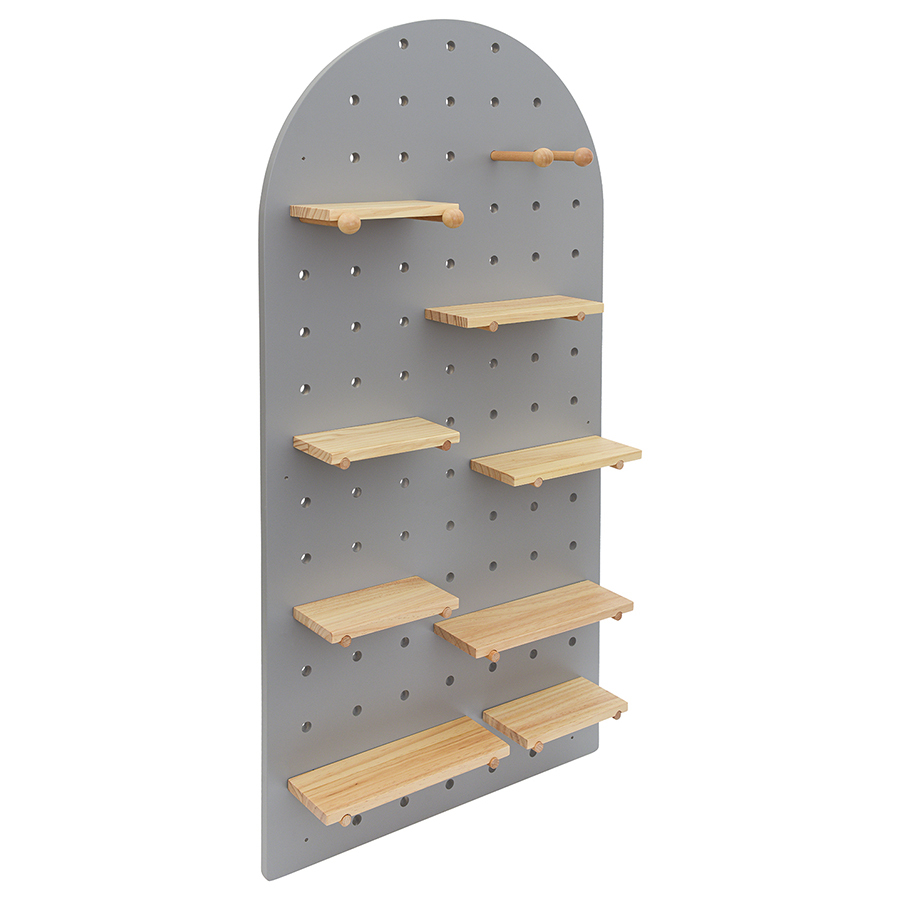 Полка Shely – многофункциональный предмет интерьера, который позволит удобно разместить различные аксессуары: наушники, декор, книги, игрушки, рамки с фотографиями, часы, цветочные горшки, сумки и многое другое. Конструкция предусматривает наличие горизонтальных полок и специальных держателей. Благодаря минималистичному дизайну и нейтральному цветовому решению модель прекрасно вписывается в любое оформление комнаты. Настенный монтаж обеспечивает компактное размещение. Практичные материалы гарантируют изделию износостойкость и долгий срок службы.