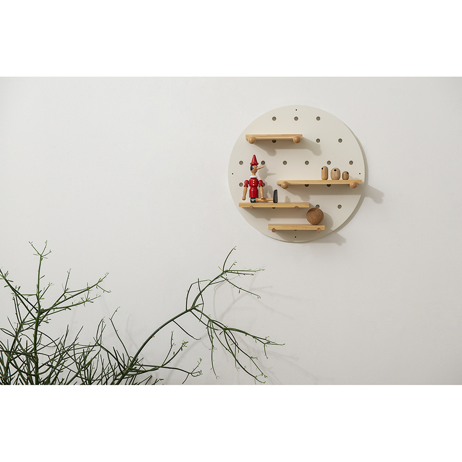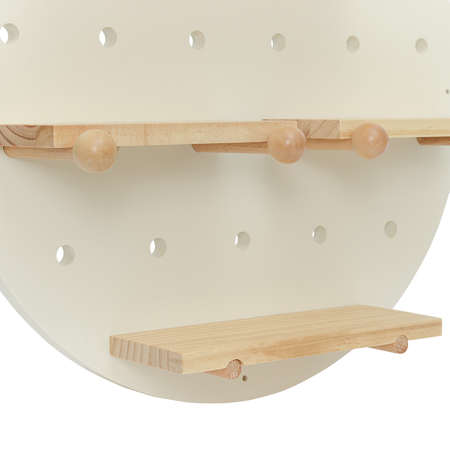 Полка круглая Shely – многофункциональный предмет интерьера, который позволит удобно разместить различные аксессуары: наушники, декор, книги, игрушки, рамки с фотографиями, часы, цветочные горшки, сумки и многое другое. Конструкция предусматривает наличие горизонтальных полок и специальных держателей. Благодаря минималистичному дизайну и нейтральному цветовому решению модель прекрасно вписывается в любое оформление комнаты. Настенный монтаж обеспечивает компактное размещение. Практичные материалы гарантируют изделию износостойкость и долгий срок службы.