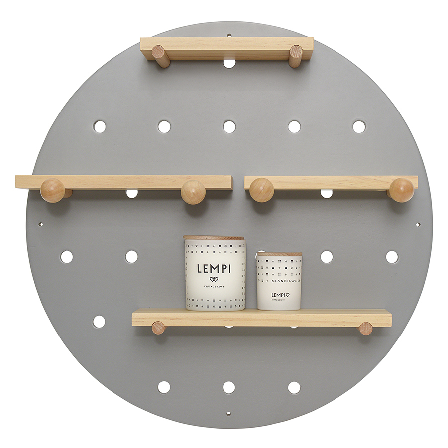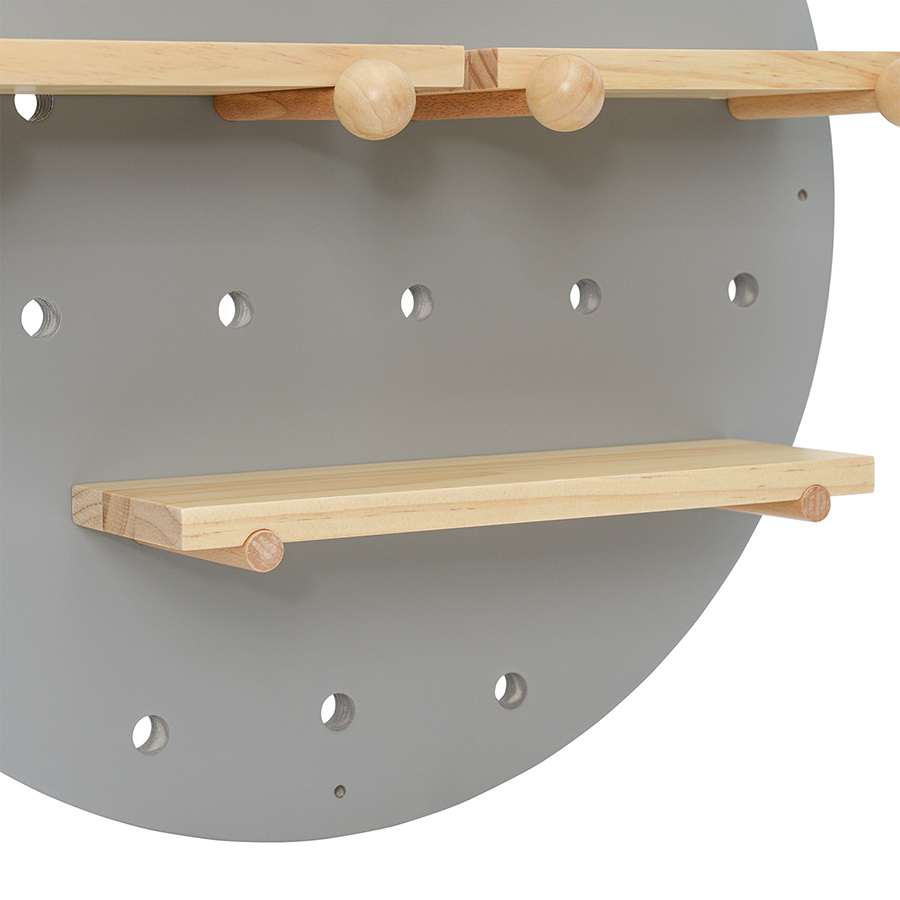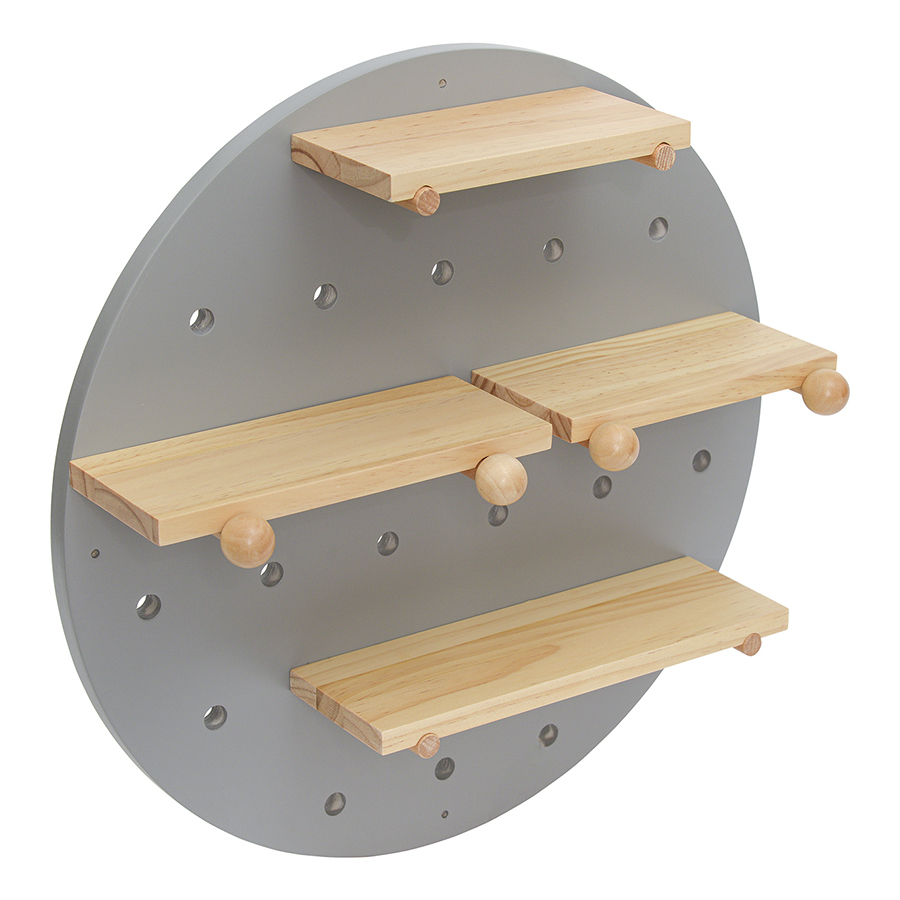 Материалы: дерево, фанера. Диаметр: 50 см. Глубина полки: 10 см. Цвет: светло-серый.