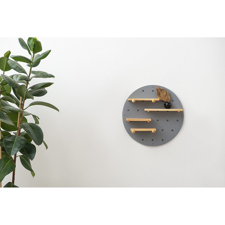 Полка круглая Shely – многофункциональный предмет интерьера, который позволит удобно разместить различные аксессуары: наушники, декор, книги, игрушки, рамки с фотографиями, часы, цветочные горшки, сумки и многое другое. Конструкция предусматривает наличие горизонтальных полок и специальных держателей. Благодаря минималистичному дизайну и нейтральному цветовому решению модель прекрасно вписывается в любое оформление комнаты. Настенный монтаж обеспечивает компактное размещение. Практичные материалы гарантируют изделию износостойкость и долгий срок службы.