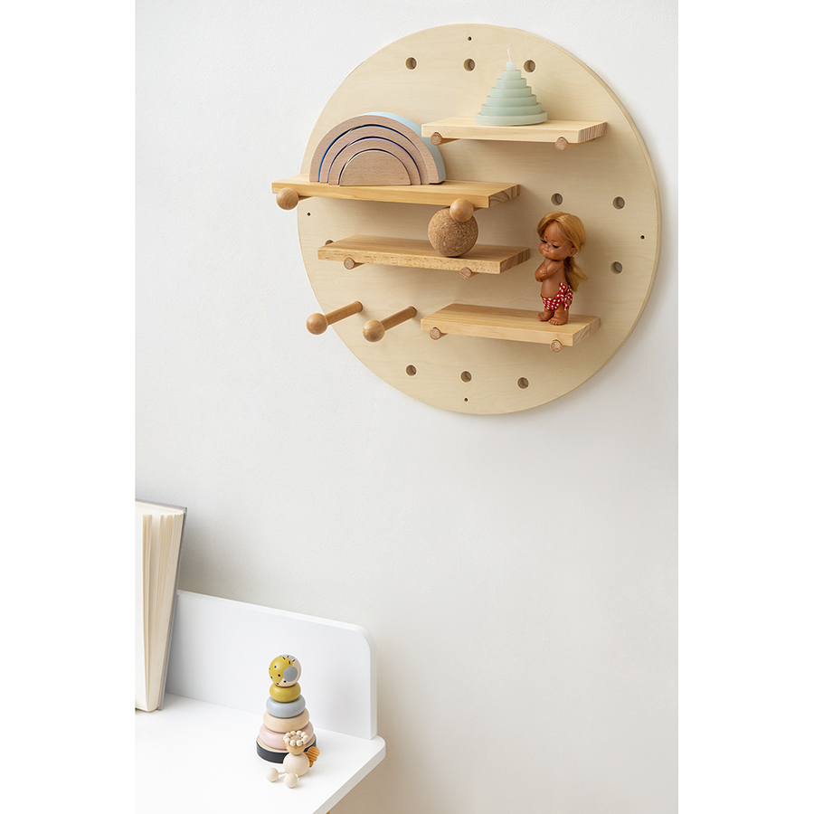 Материалы: дерево, фанера. Диаметр: 50 см. Глубина полки: 10 см. Цвет: светлое дерево.