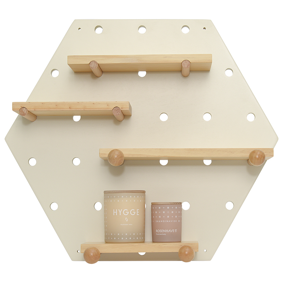 Полка шестиугольная Shely – многофункциональный предмет интерьера, который позволит удобно разместить различные аксессуары: наушники, декор, книги, игрушки, рамки с фотографиями, часы, цветочные горшки, сумки и многое другое. Конструкция предусматривает наличие горизонтальных полок и специальных держателей. Благодаря минималистичному дизайну и нейтральному цветовому решению модель прекрасно вписывается в любое оформление комнаты. Настенный монтаж обеспечивает компактное размещение. Практичные материалы гарантируют изделию износостойкость и долгий срок службы.