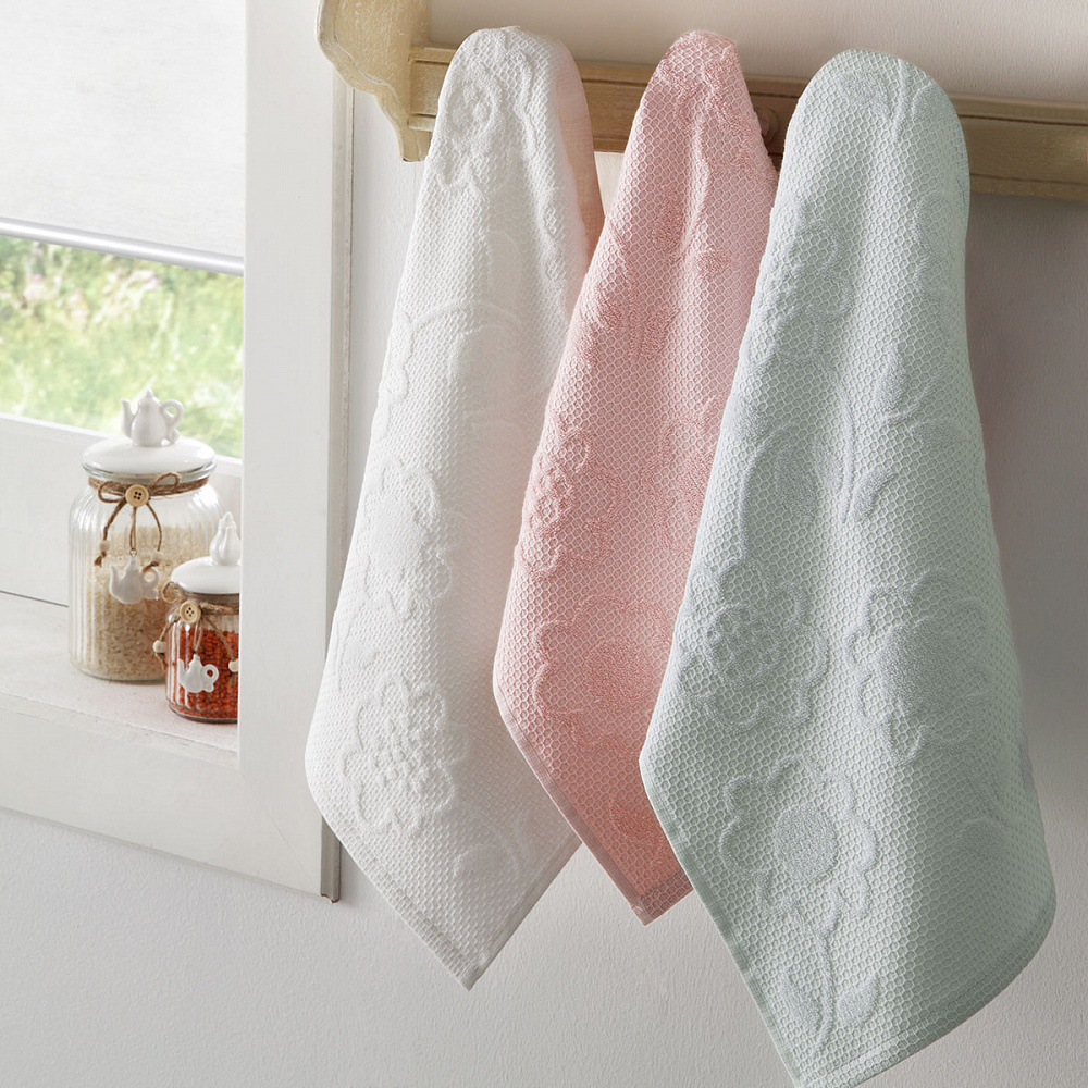 Кухонные полотенца Tivolyo Home производятся из 100% натурального хлопка с применением особого плетения, позволяющего быстрее и качественнее поглощать влагу, не оставляя следов на поверхности.