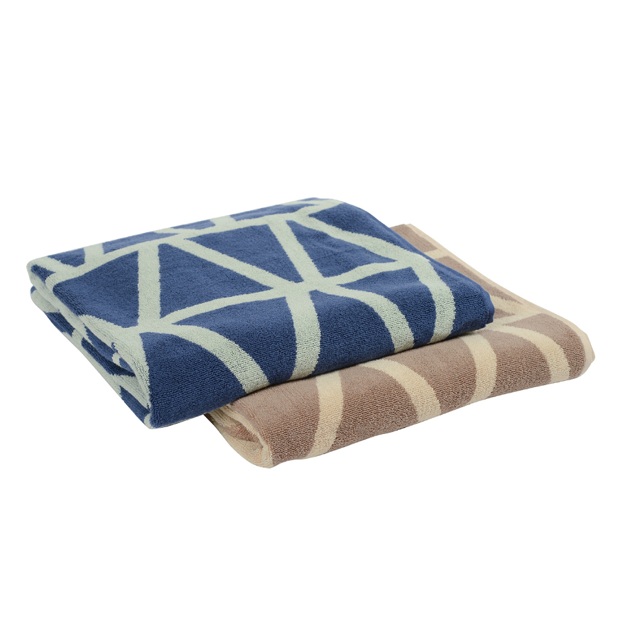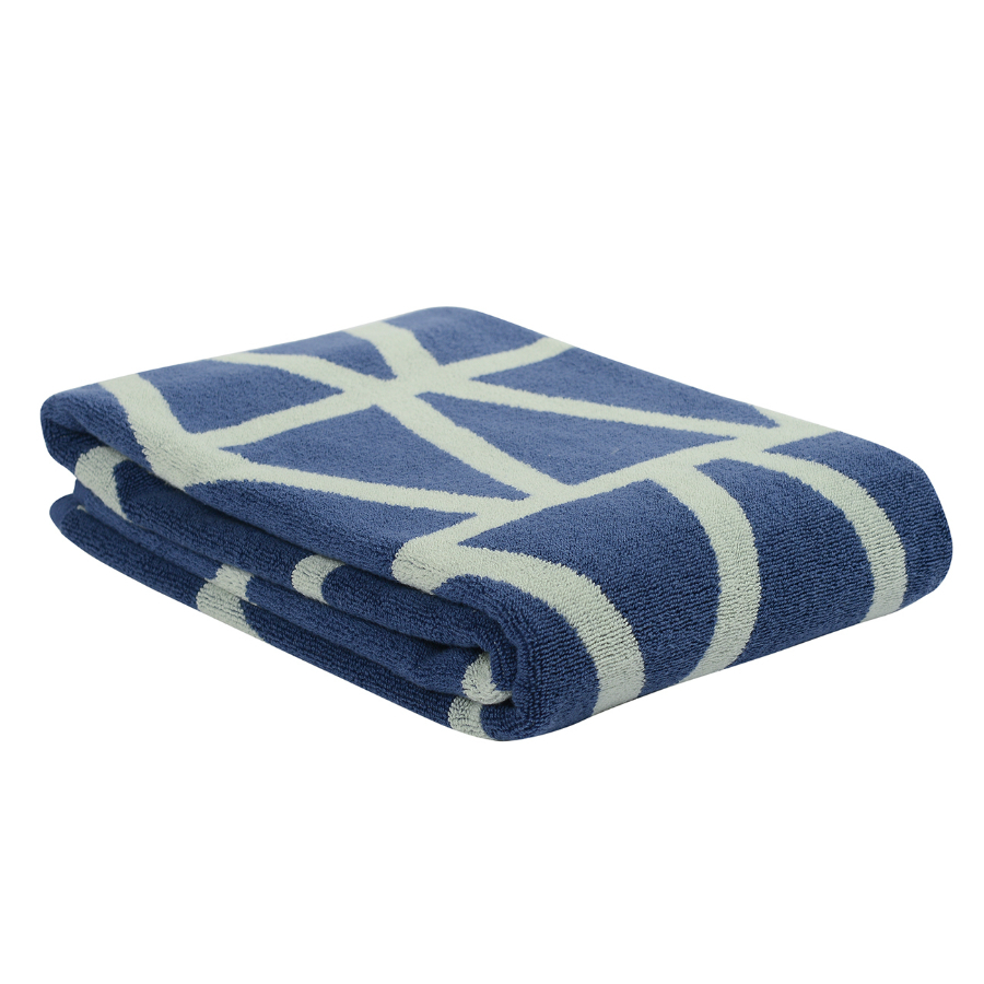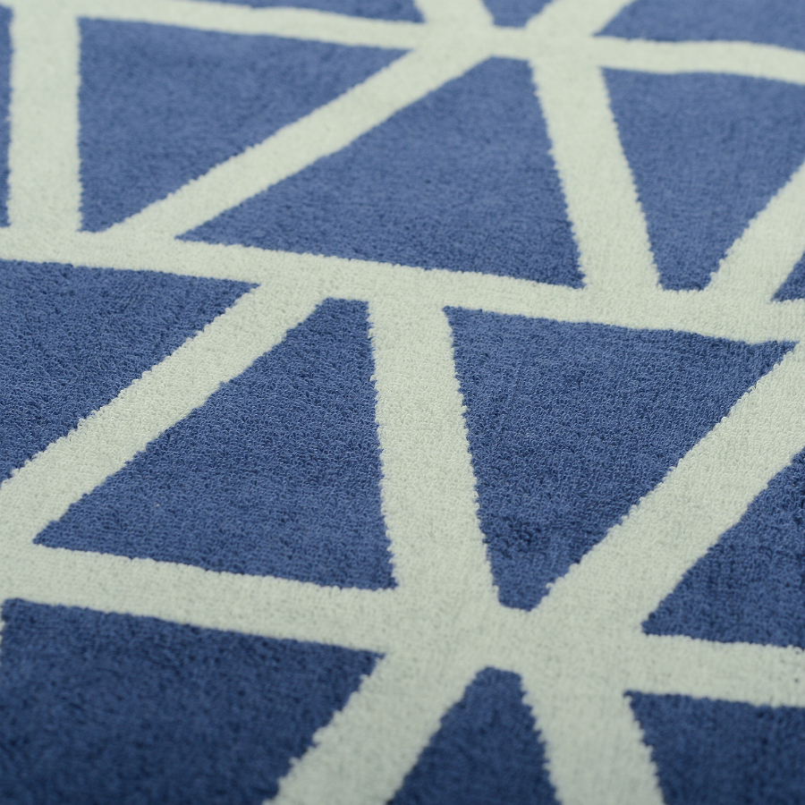 При создании серо-синего полотенца использовался мягкий, приятный на ощупь хлопок. Фактурный материал отлично впитывает влагу, быстро сохнет и не деформируется после множества стирок. Модель украшена авторским принтом Geometry.