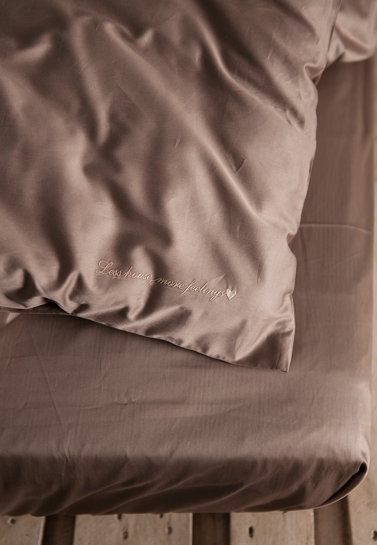 В углу пододеяльника есть маленький секретик – вышивка «Less house, more feelings», в переводе на русский язык: «Меньше быта, больше чувств».