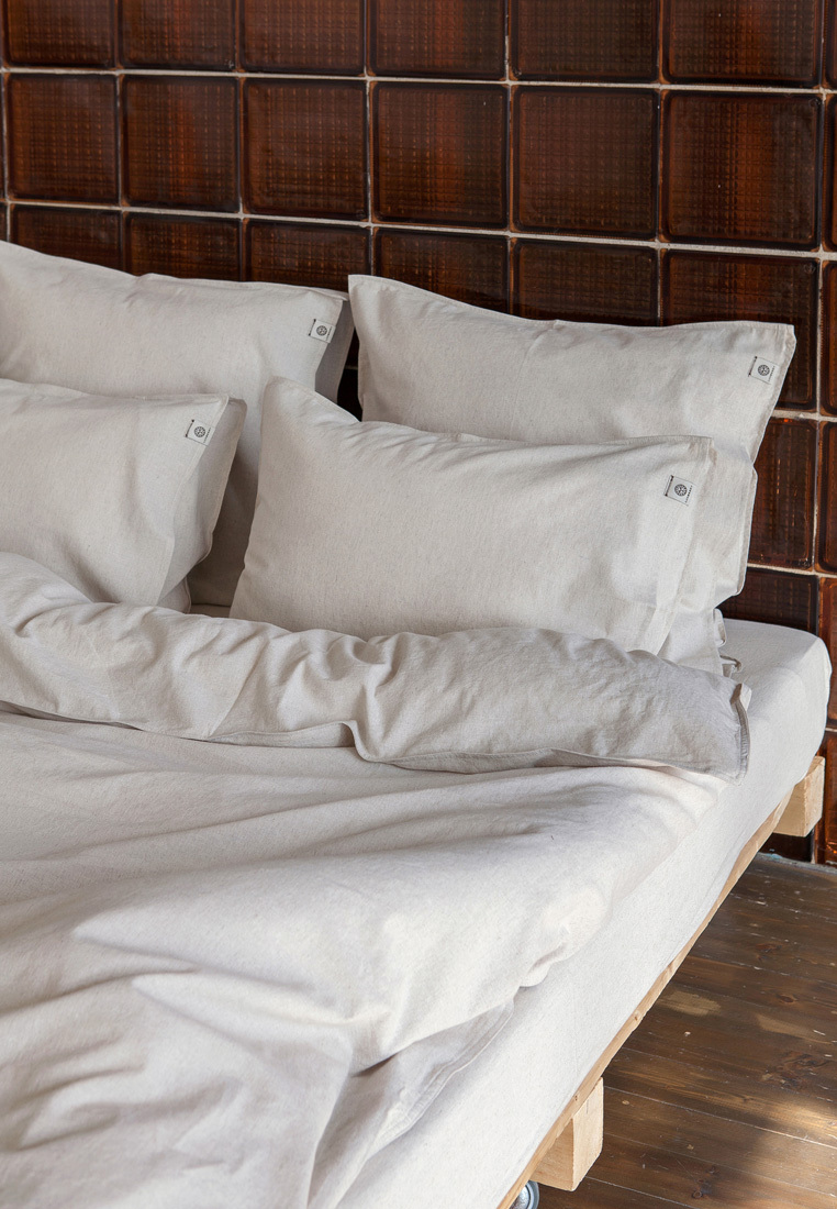 Лэйбл с важной информацией по уходу и стирке так же нарушил все традиции! Он служит не только важной информацией для правильного ухода за бельем, но и является частью дизайна, так как нарочито видимо пришит на простыни, пододеяльники и наволочки.