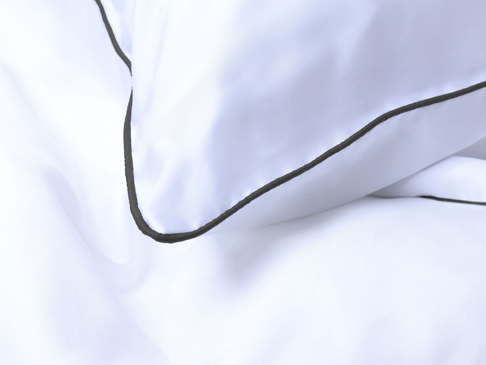 Это объемный кант насыщенного графитно-серого оттенка. Цвет идеально вписывается в стиль Mollen: яркий, но не вызывающий, органично сочетающийся с самыми разными оттенками. Кант задает отчетливый ритм и превращает банальный комплект постельного белья в лаконичный дизайнерский шедевр.