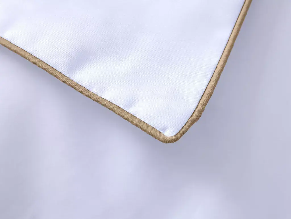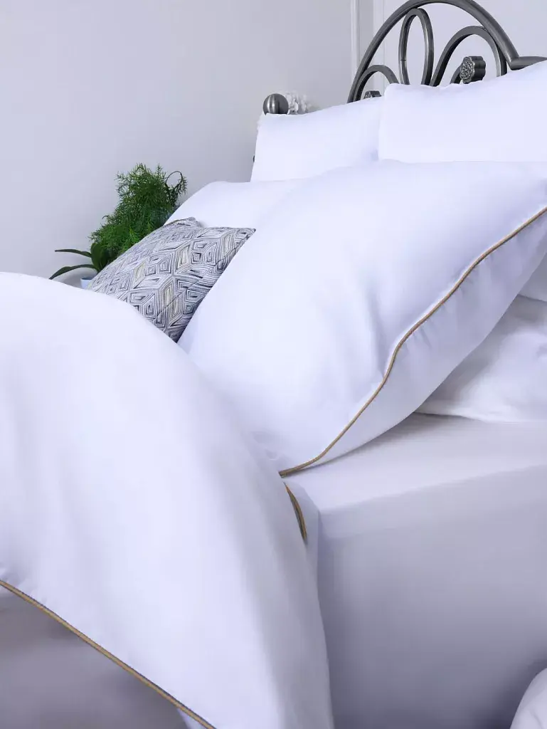 Постельное белье 1.5 спальное Mollen белое с песочно-бежевым кантом