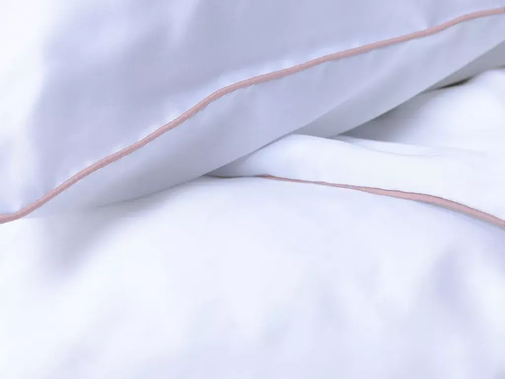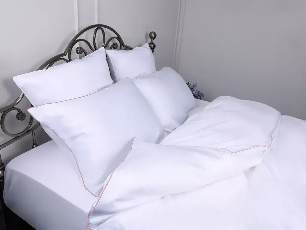 Постельное белье 1.5 спальное Mollen белое с пудровым кантом