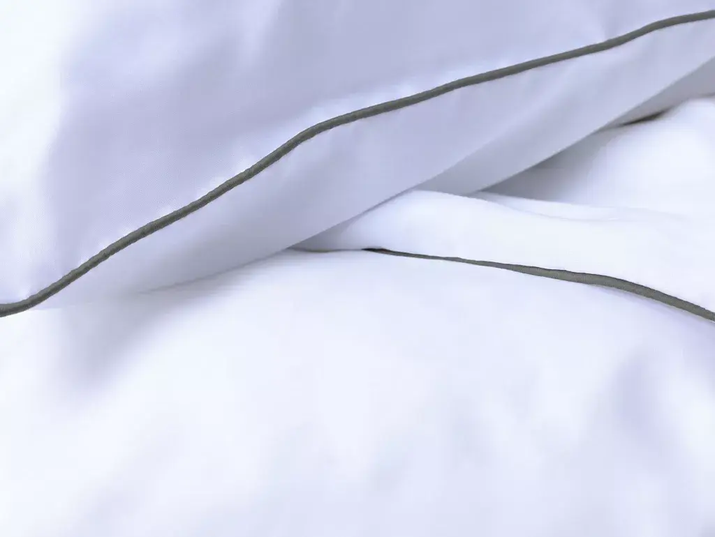 Постельное белье 1.5 спальное Mollen белое с серебристо-серым кантом