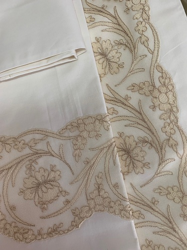 Постельное белье 1.5 спальное Palombella Percalle Pizzo бежевое