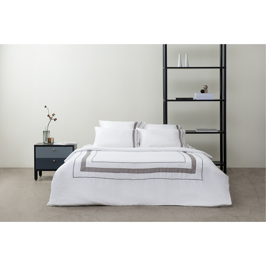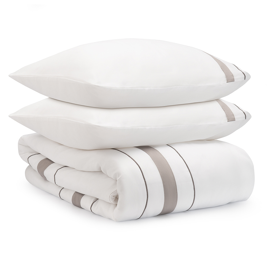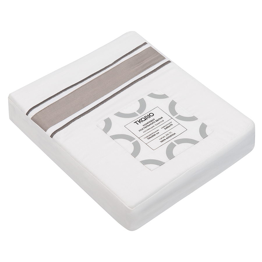 Постельное белье 1.5 спальное Tkano Essential белое с серым кантом