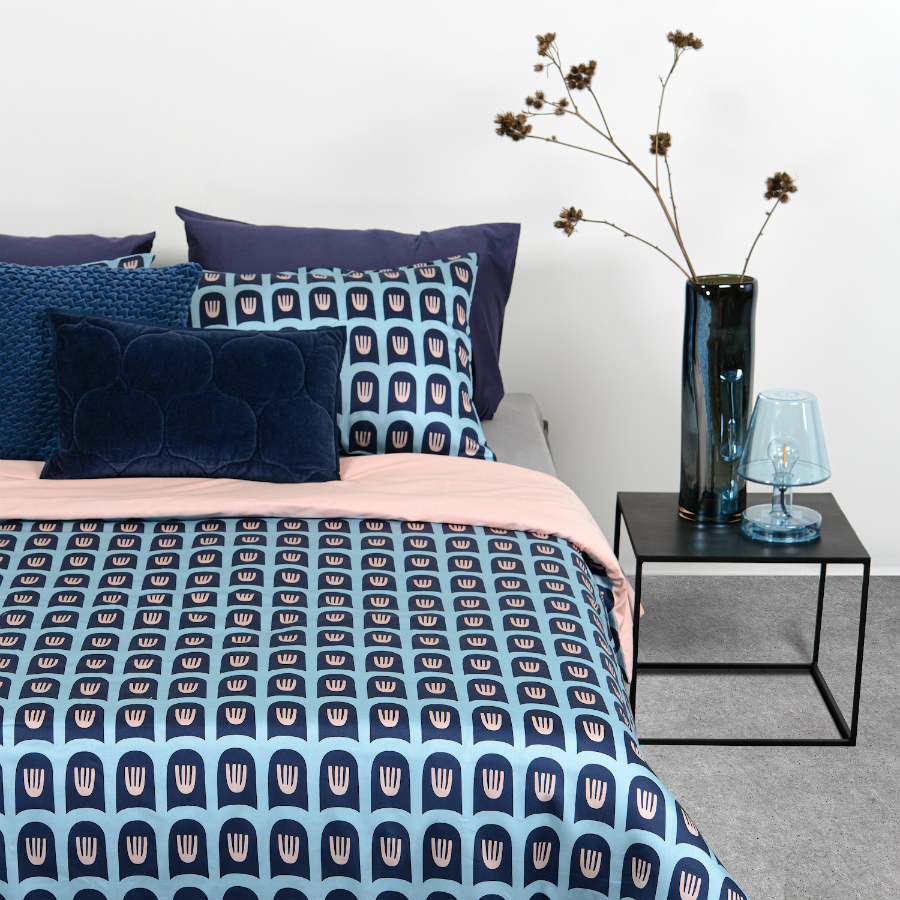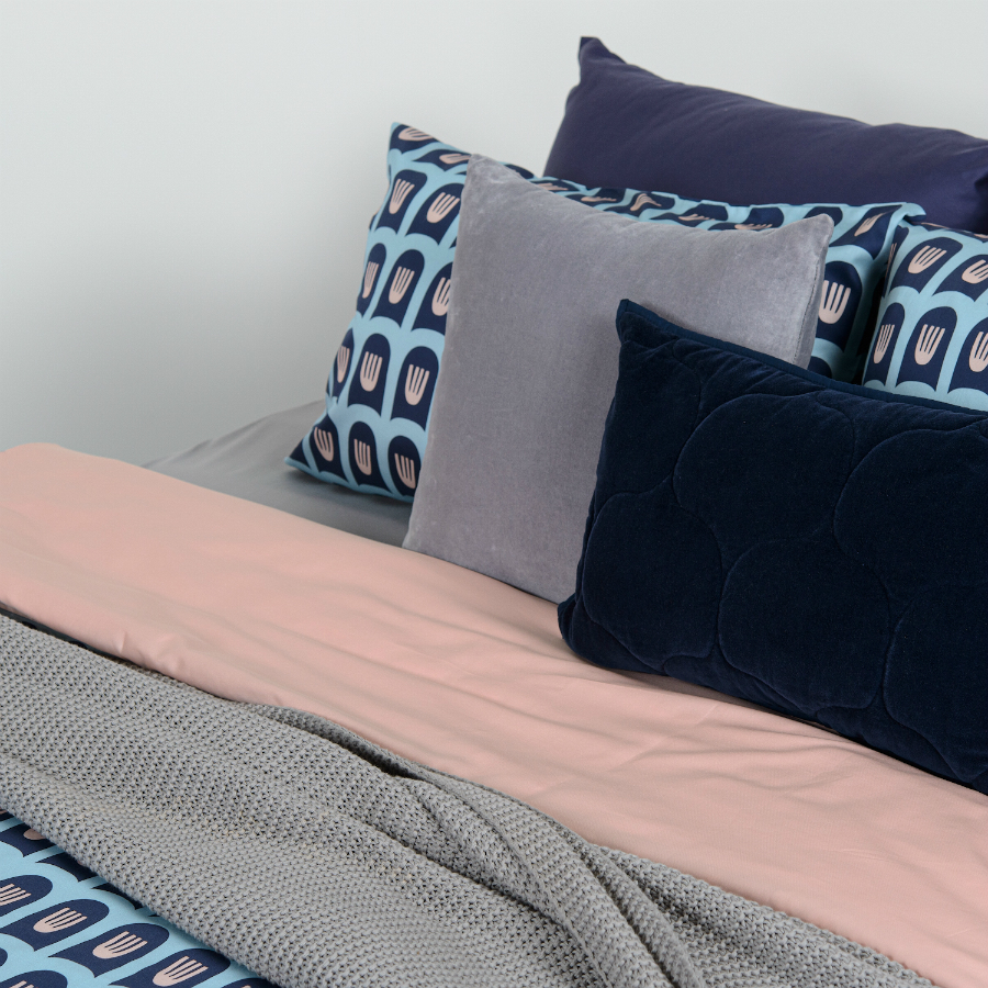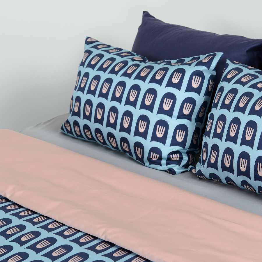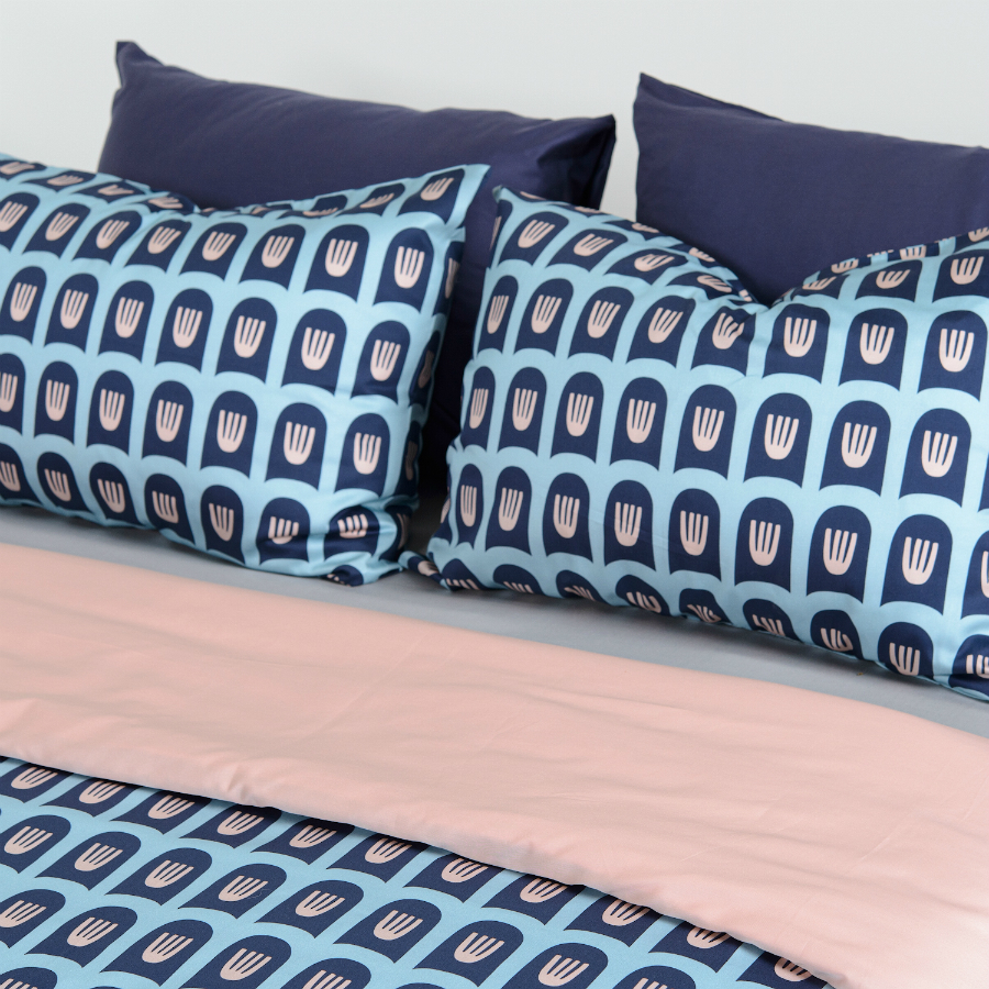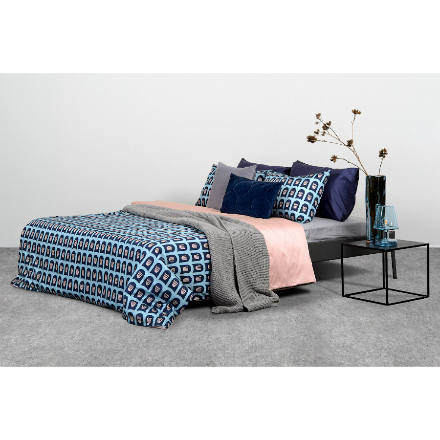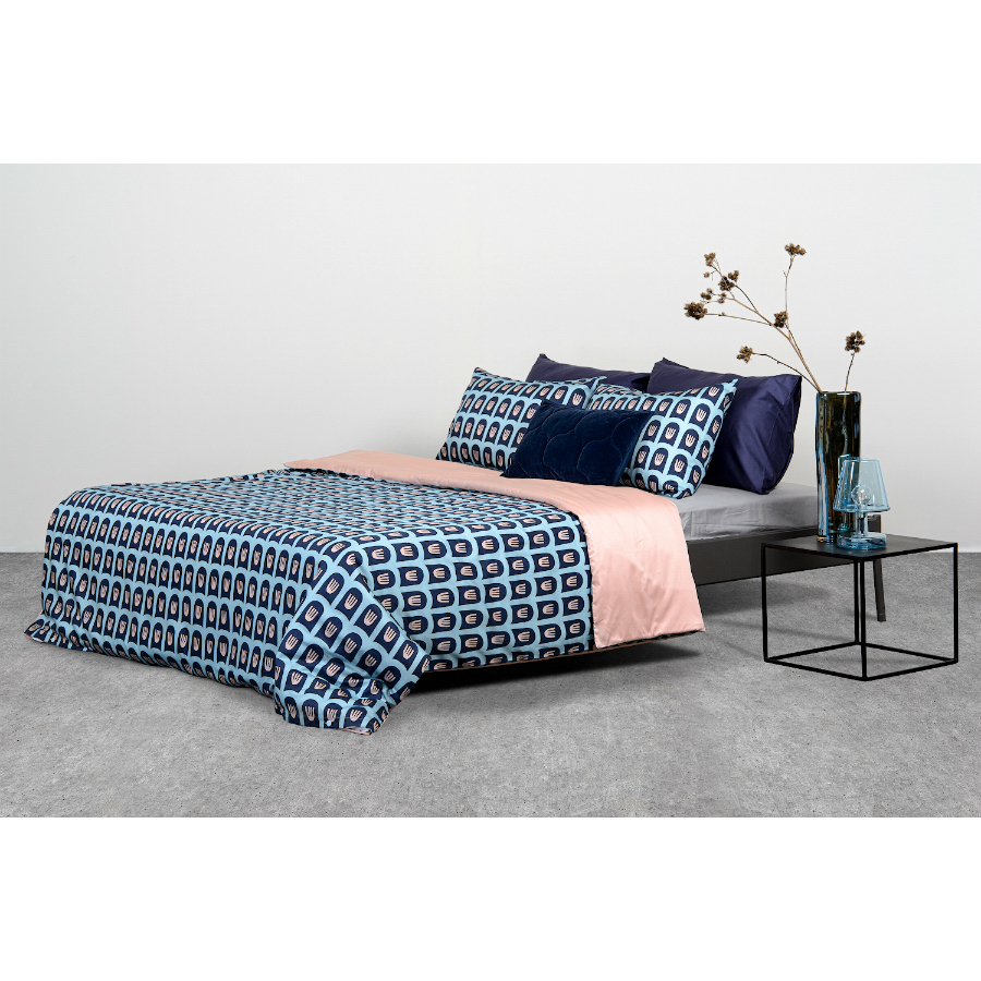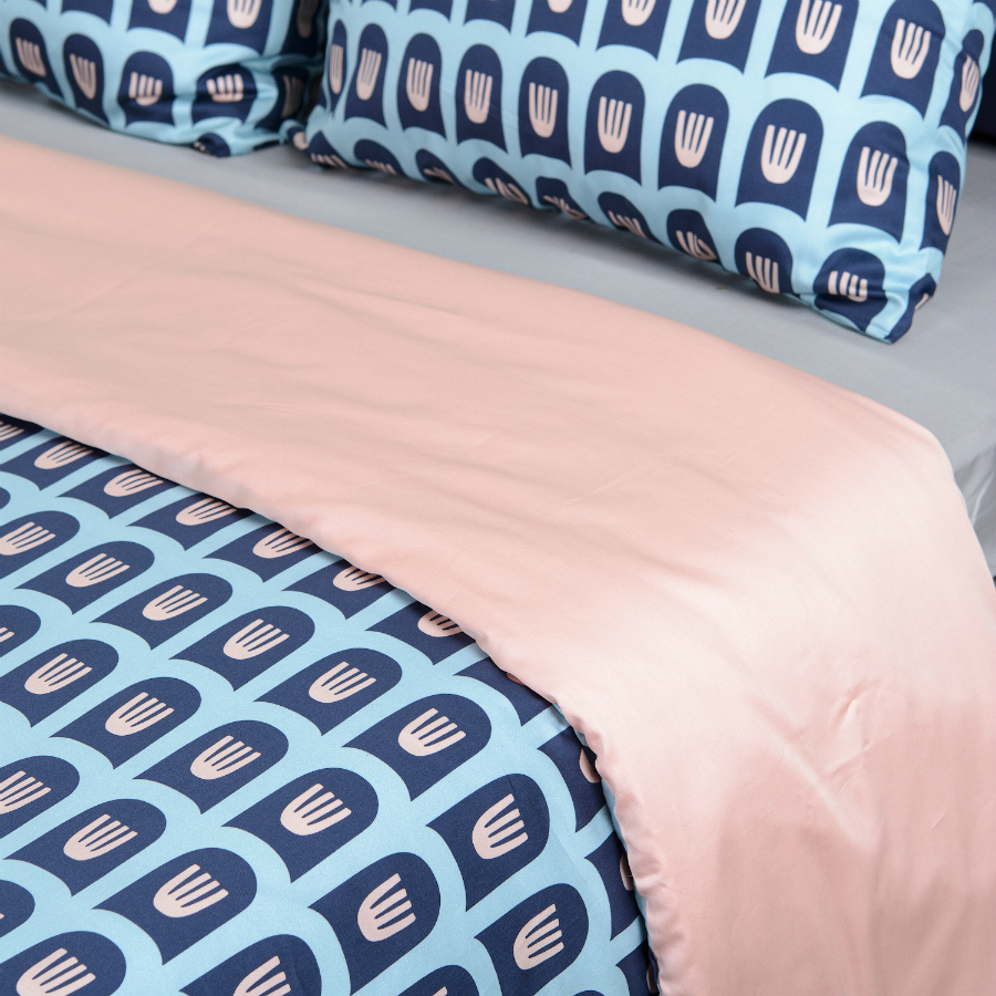 Двусторонний комплект постельного белья из сатина c принтом ",Blossom time", из коллекции Cuts&Pieces станет ярким акцентом в интерьере спальни. Одна сторона розового цвета, а вторая контрастная — нежно голубого. Прочный хлопковый материал не теряет яркость цвета и гладкость даже после множества стирок. Сатин плотностью 210 ТС подарит ощущение комфорта и нежности во время сна.