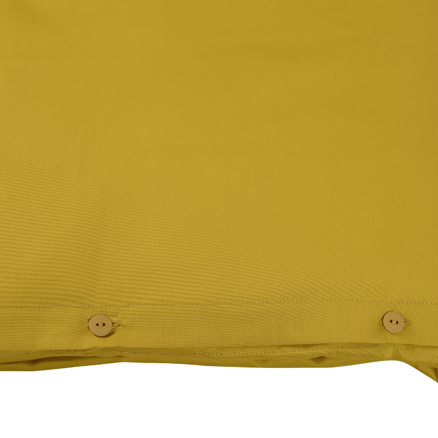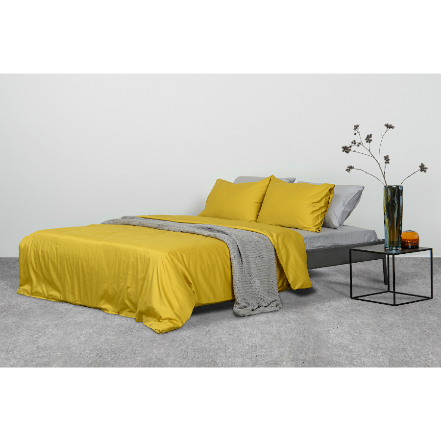 Пододеяльник и две наволочки 50х70 выполнены из плотного хлопкового сатина. Приятный на ощупь материал хорошо пропускает воздух, обеспечивая коже комфорт в течение сна.Однотонный комплект представлен в жизнерадостном горчичном оттенке.