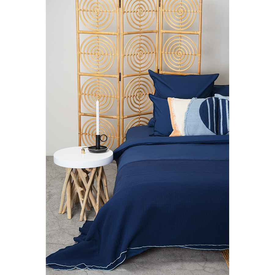 Комплект постельного белья темно-синего цвета из органического стираного хлопка из коллекции Essential станет стильным акцентом в интерьере спальни. Стираный перкаль — красивый материал, который отличается мягкостью. Он получается особым способом пряжи – нити переплетаются крест на крест, что придает ткани дополнительную прочность. Перкаль создает ощущение прохлады в летнюю жару и сохраняет тепло зимними ночами. Он не деформируется, не линяет, и на нем не образуются катышки. Подходит для повседневного использования.