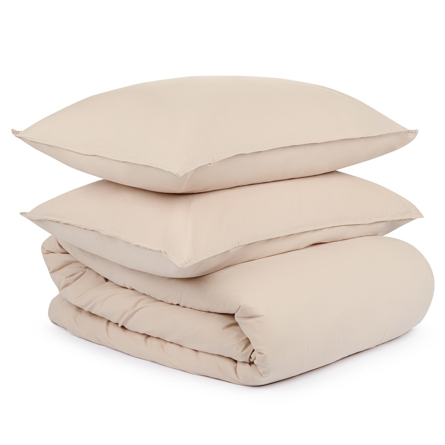 Комплект постельного белья бежевого цвета из органического стираного хлопка из коллекции Essential станет стильным акцентом в интерьере спальни. Стираный перкаль — красивый материал, который отличается мягкостью. Он получается особым способом пряжи – нити переплетаются крест на крест, что придает ткани дополнительную прочность. Перкаль создает ощущение прохлады в летнюю жару и сохраняет тепло зимними ночами. Он не деформируется, не линяет, и на нем не образуются катышки. Подходит для повседневного использования.