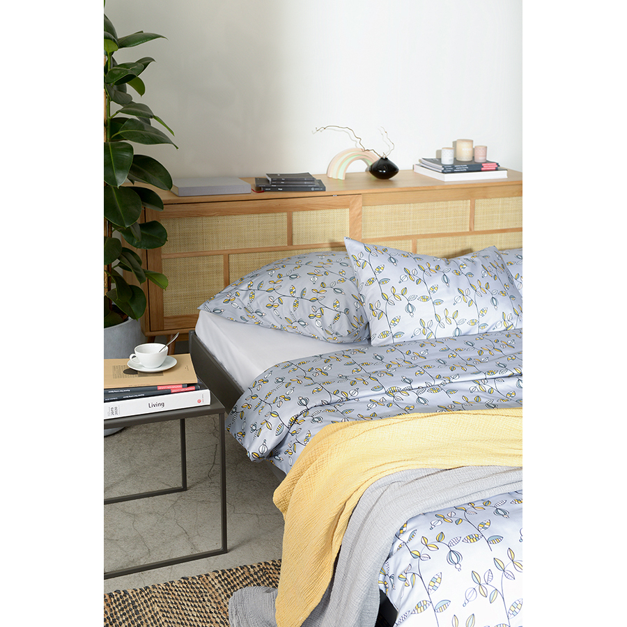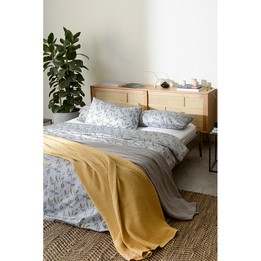Комплект постельного белья из сатина с растительным принтом «Ягоды тайги» из коллекции Russian North добавит атмосферу природы русского севера в ваш интерьер. Разбавив его наволочками и простыней светло-серого или горчичного цветов из коллекции Essential, вы получите готовое дизайнерское решение для вашей спальни. Хлопковый сатин плотностью 210 ТС приятен на ощупь и обладает естественным блеском. Он не теряет внешний вид даже после множества стирок, не деформируется и не линяет, на нем не образуются катышки. В комплекте: пододеяльник 150х200 см, застегивающийся на пуговицы, и две наволочки 50х70 см с системой закрытия клапан. Упаковка – брендированная крафтовая коробка. ! Максимальная температура стирки 60°C ! Гладить при максимальной температуре 150°C ! Сушить горизонтально ! Не отбеливать ! Возможна сухая чистка
