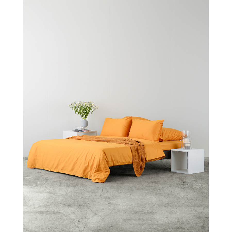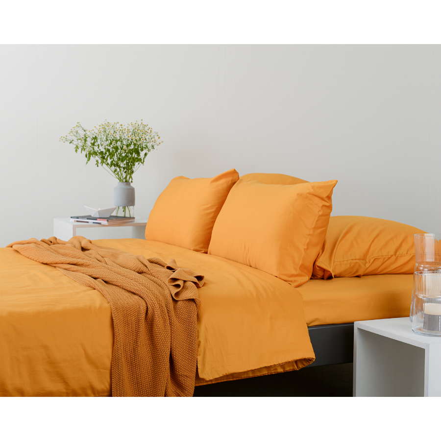 Насыщенный цвет шафрана для любителей стильного и удобного постельного белья на каждый день. Мягкий сатин плотностью в 210ТС порадует нежным шелковым отливом и легкой прохладой. Только 100%, натуральный хлопок для максимального комфорта.Размер: пододеяльник – 150х200 см, две наволочки по 50х70 см