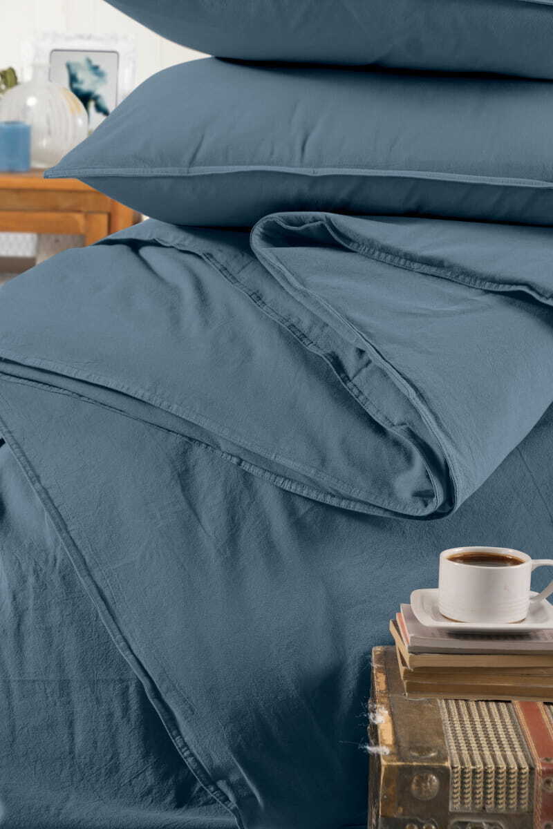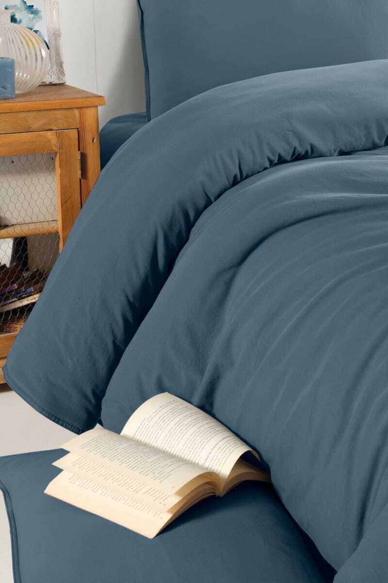 Постельное белье из коллекции Arya Stone Washed - это невесомое прикосновение бархатной материи к вашей коже. Ткань хлопкового комплекта прошла уникальную обработку stonewashed. Технология представляет собой ферментативную стирку на экстремально высоких температурах. Подобная обработка придает прочность ткани обеспечивает стойкость цвета. Материал приобретает легкую примятость, что дарит ощущение мягкости и уюта. Метод вареного хлопка предотвращает изнашивание, снижает статику, а также исключает усадку после стирки. Пододеяльник декорирован минималистичными пуговицами. Скандинавский стиль придает аккуратная строчка по периметру комплекта. Полуночный синий оттенок прекрасно впишется в интерьер вашей спальни. Широкую простынь удобно надевать на кровать, размер 240х260 см предотвращает скатывание и пройдет на любую высоту матраса. Премиальное двуспальное белье Natural Stone Washed станет приятным подарком для родных и близких. Однотонный комплект от бренда Arya Home позаботится о качественном сне Вашей семьи!