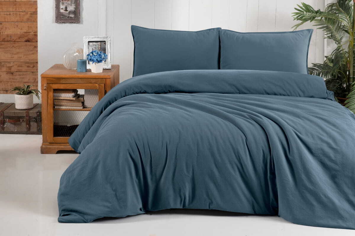 Постельное белье 2 спальное евро Arya home Natural Stone Washed синее
