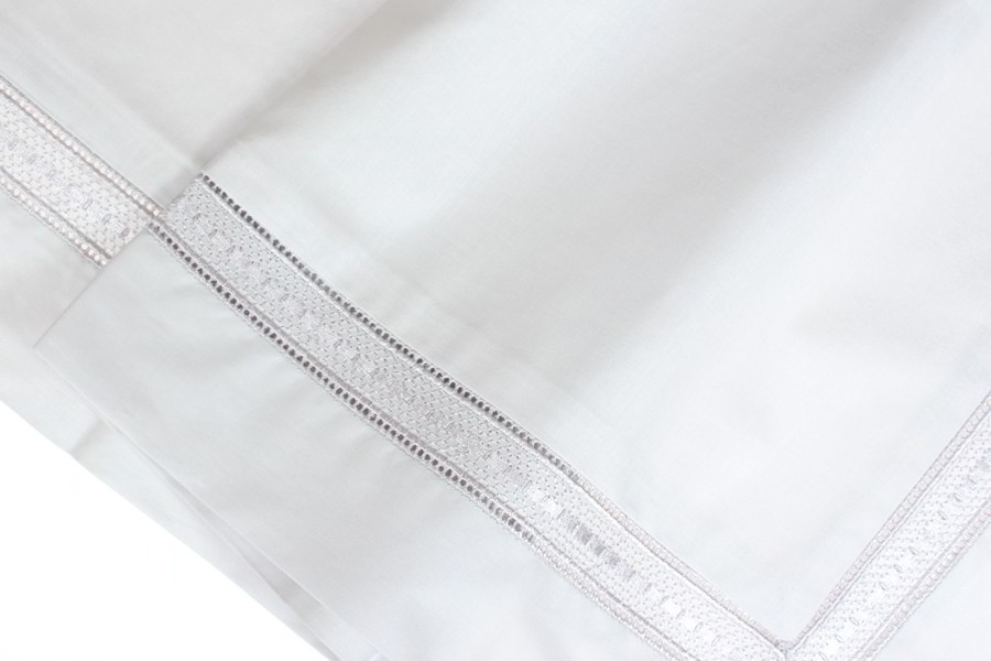 Постельное белье Акцент изготовлено из 100% хлопка перкаля. Тонкая шелковистая и в то же время очень прочная ткань. Края подушек и пододеяльника прошиты серебристой нитью с мережкой. Именно на перкалевой ткани подобные вышивки смотрятся особенно изящно. Постельное белье будет радовать Вас не один год, благодаря своей плотности, мягкой текстуре и благородному декору.