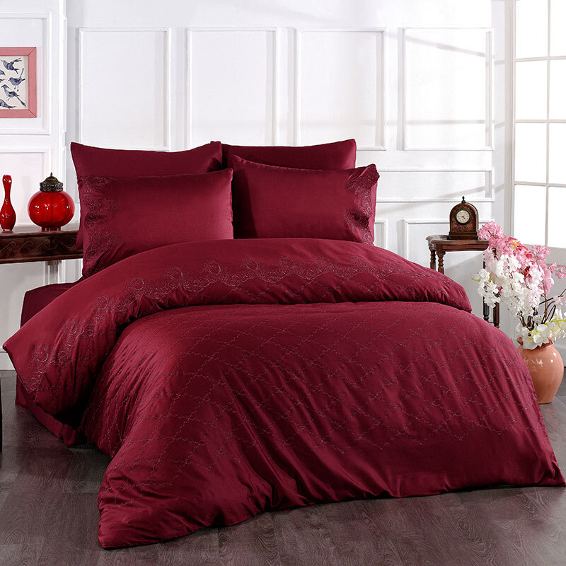 Постельное белье 2 спальное евро Grazie home Vianova бордовое