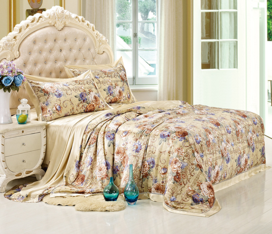 Эффектное постельное белье из натурального шелка. Комплект отлично подойдет к любому интерьеру спальной комнаты.