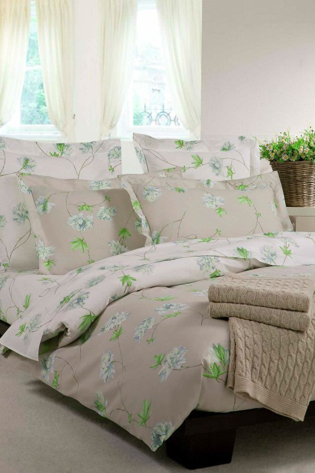 Постельное белье 2 спальное евро макси Mirabello Azalee double v02M бежевое-голубое