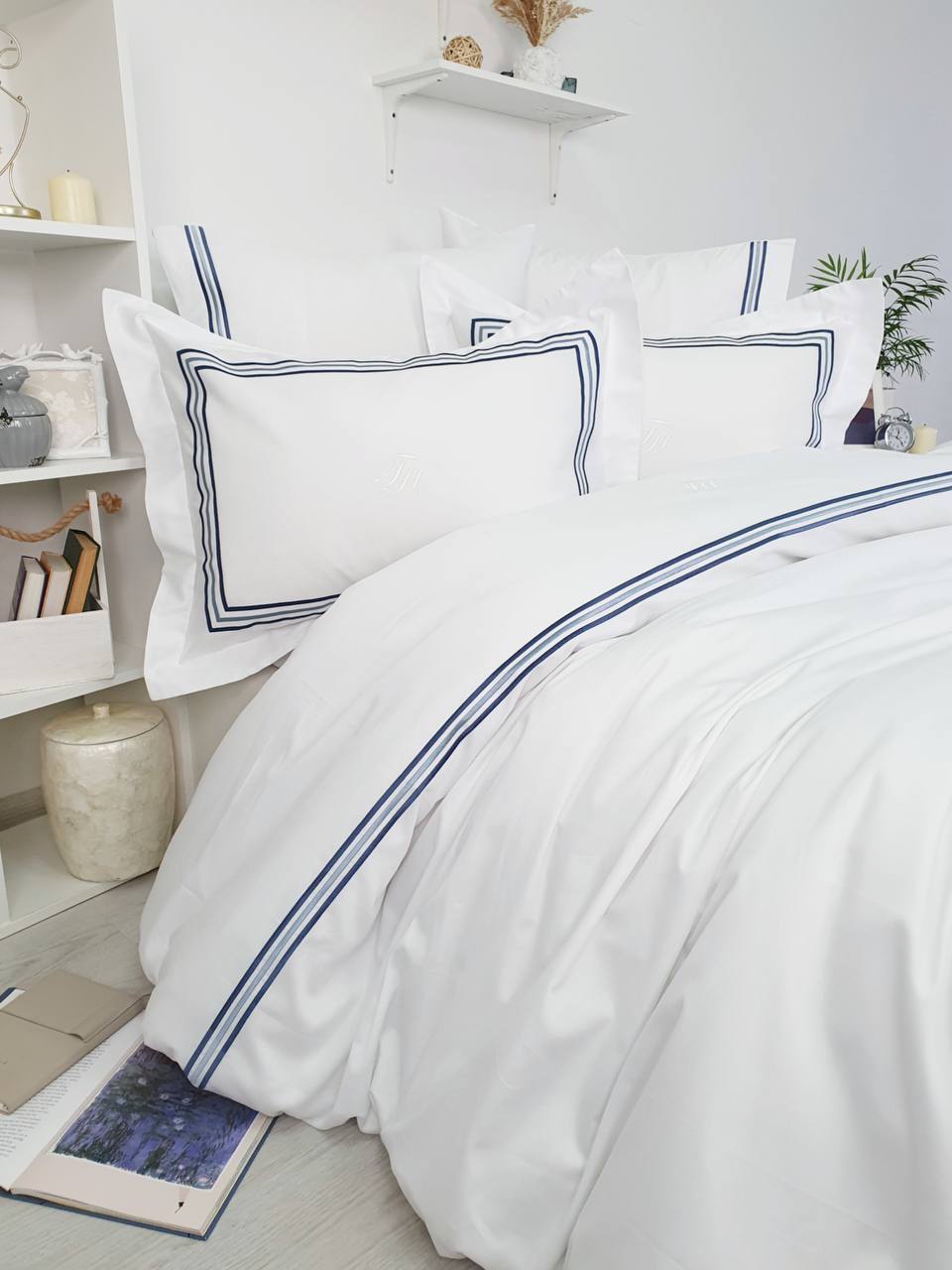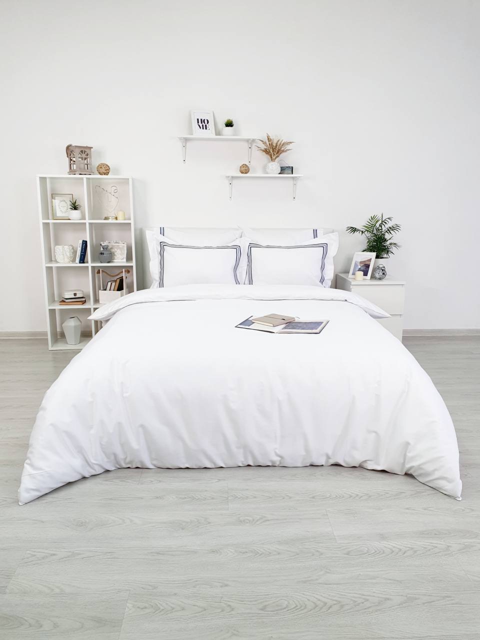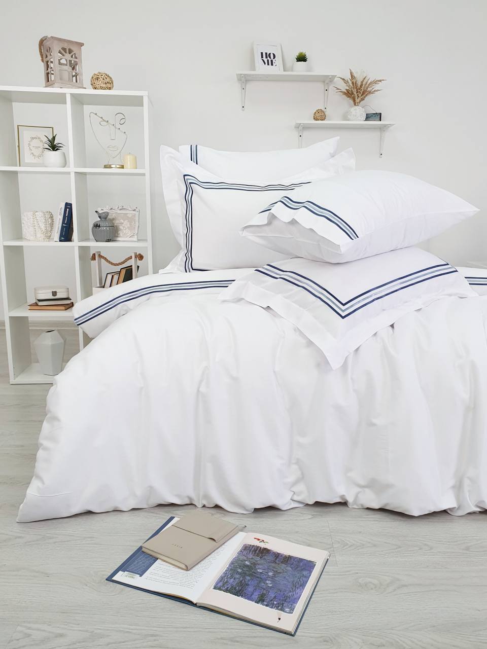 Постельное белье 2 спальное евро макси Tivolyo home Line белый/синий