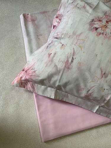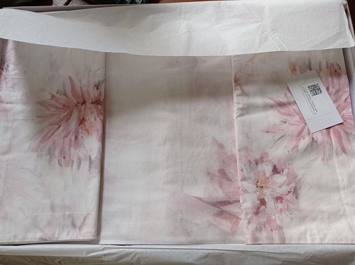 Роскошное постельное белье с принтом. В комплект входит прямая простыня, 2 наволочки и пододеяльник.