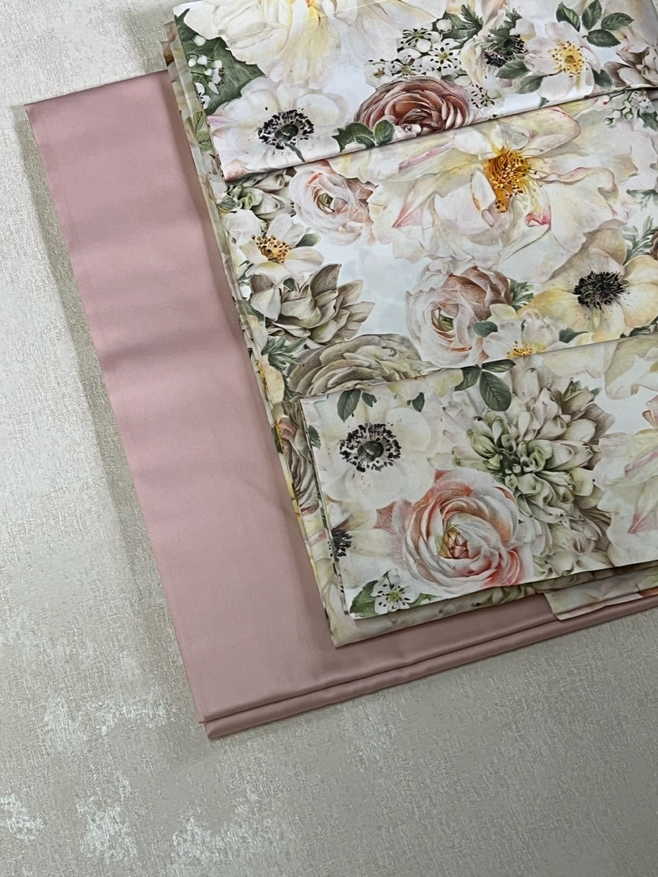 Верх пододеяльника - крупные цветы на светло-бежевом фоне,