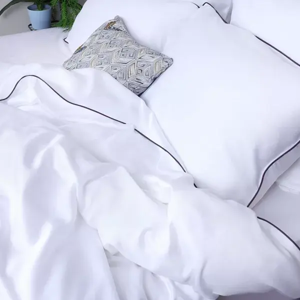 Постельное белье 2 спальное евро Mollen белое с графитно-серым кантом
