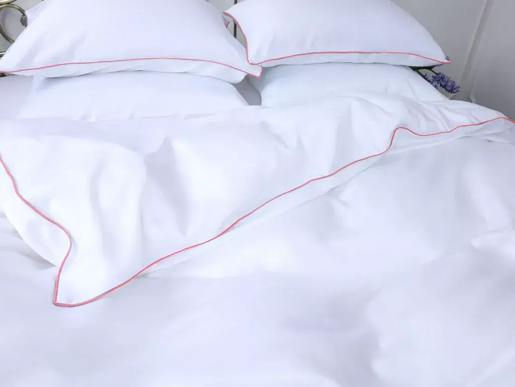 Постельное белье 2 спальное евро Mollen белое с розово-коралловым кантом