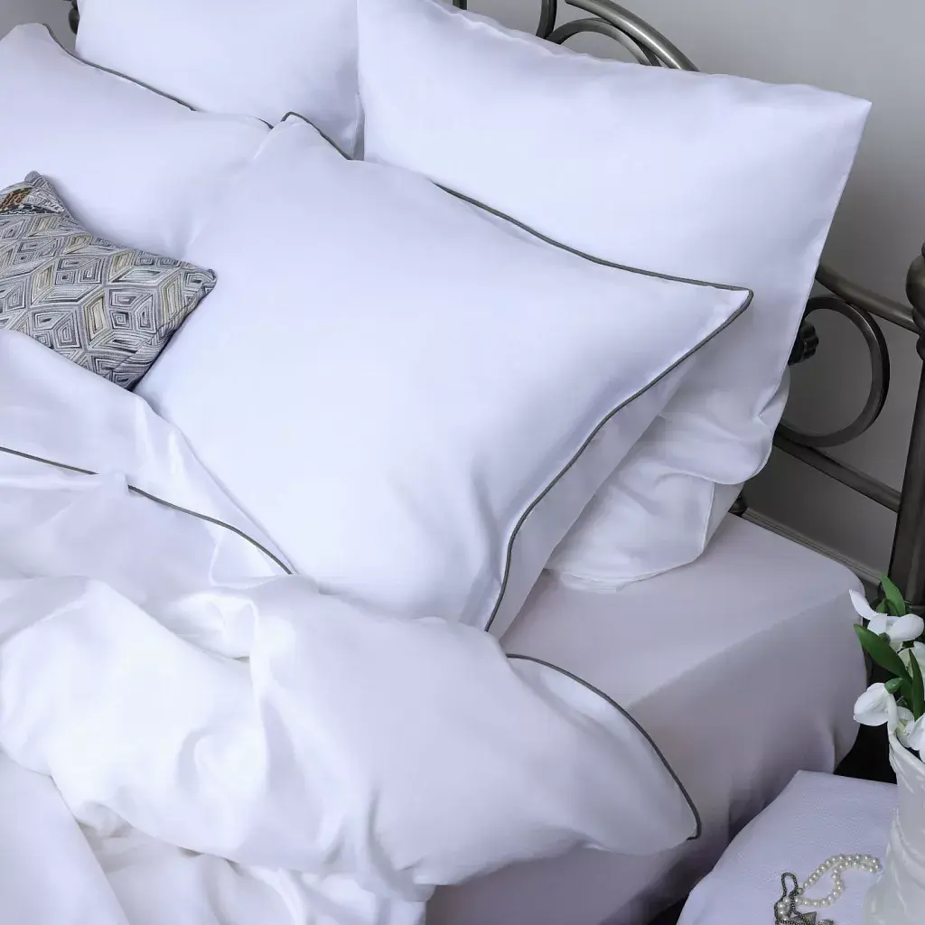 Постельное белье 2 спальное евро Mollen белое с серебристо-серым кантом