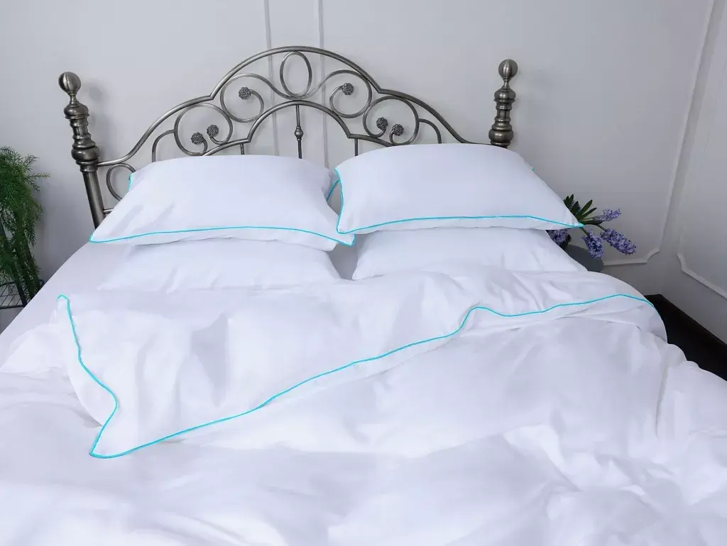 Постельное белье 2 спальное евро Mollen белое с светло-бирюзовым кантом